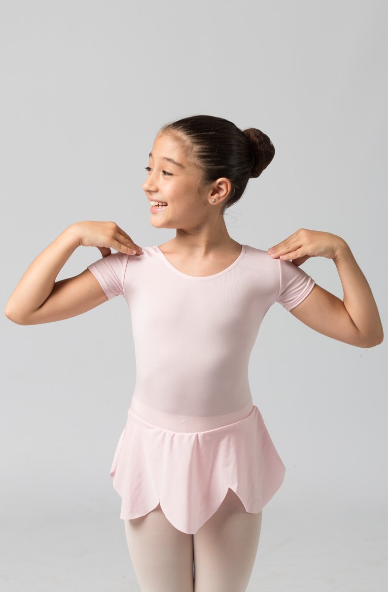 Body a manica corta con gonnellino cucito e sagomato a petali.