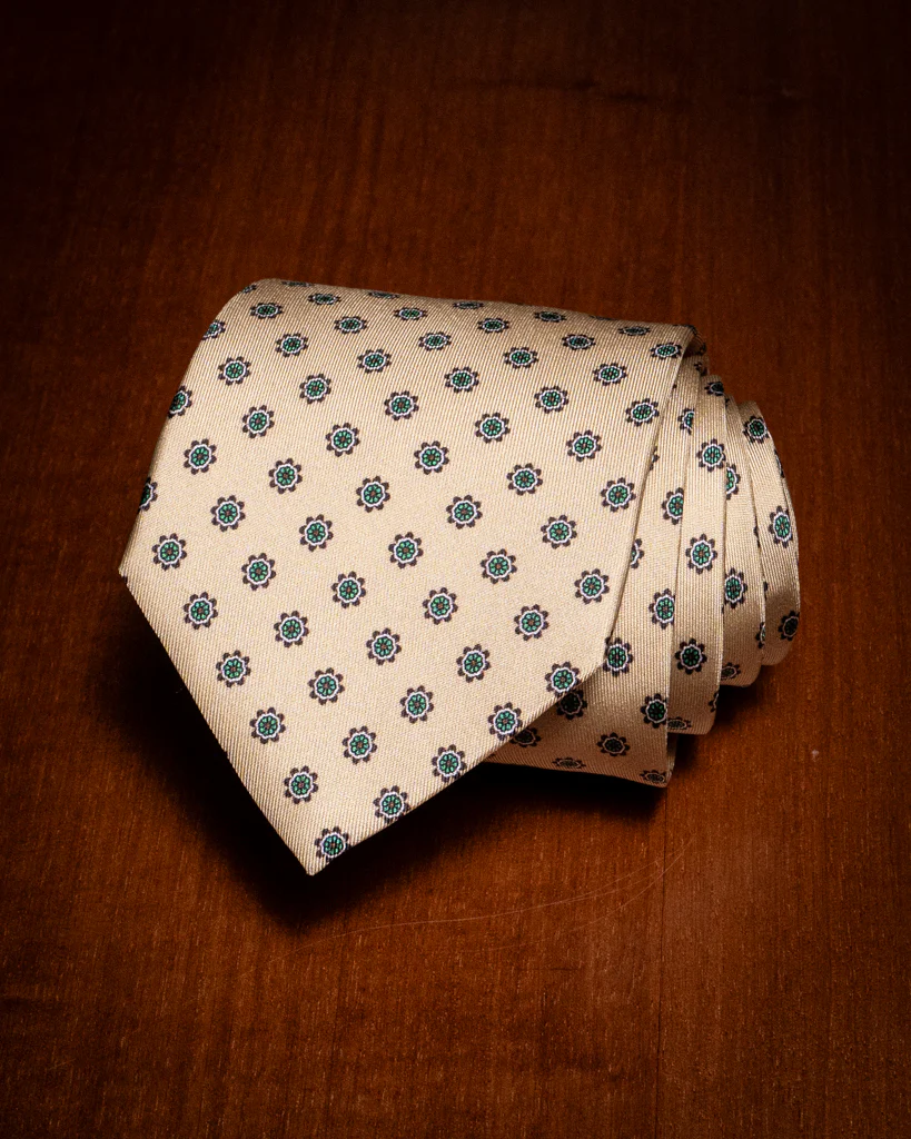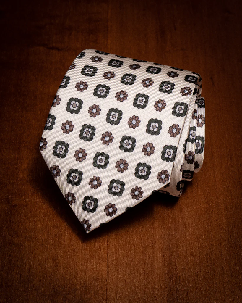Cravatta Beige con Fiori Verdi