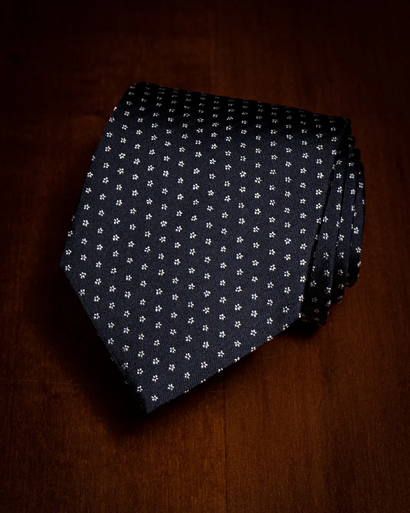 Cravatta Blu con Micro Fiori Bianchi