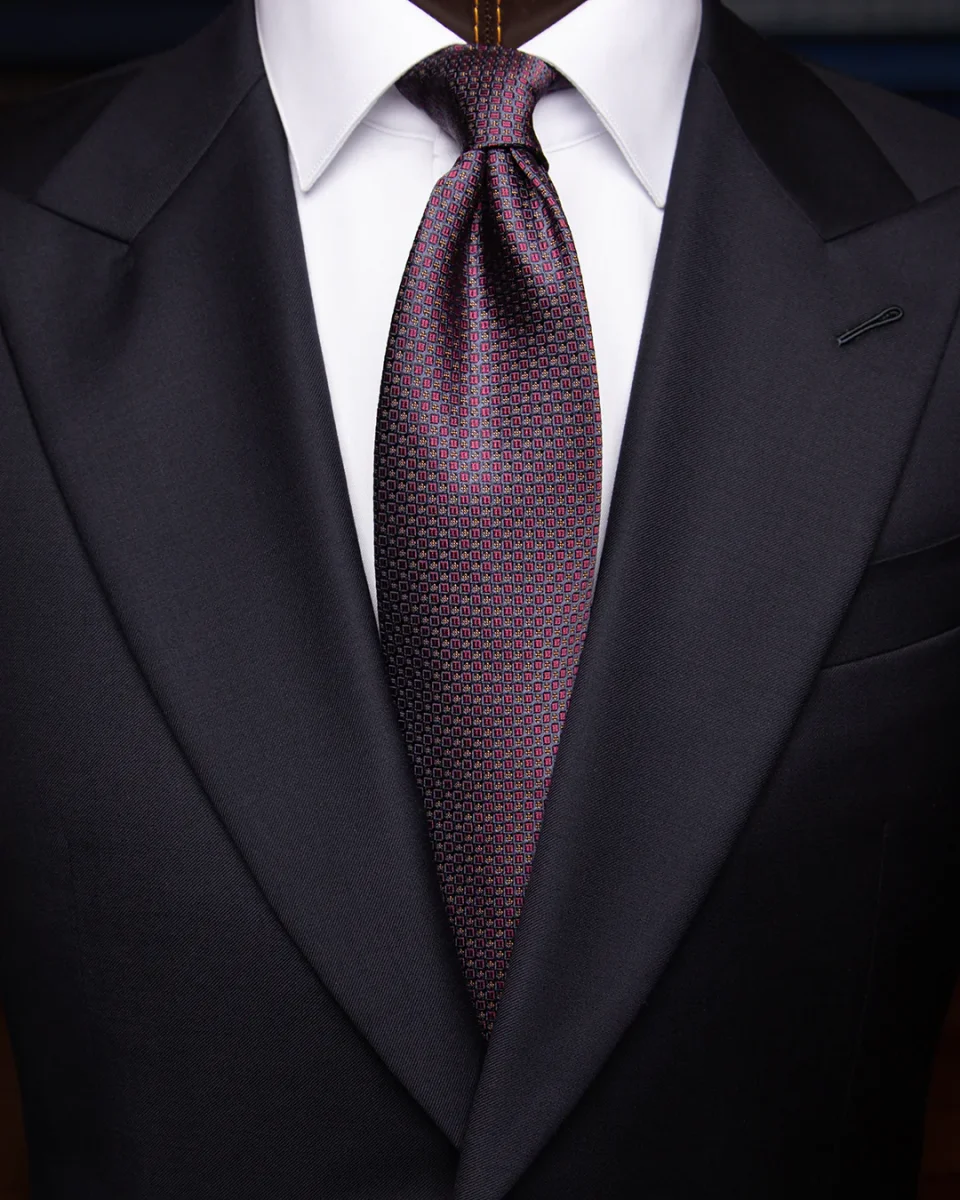Cravatta Blu con Microfantasia a Quadratini Prugna