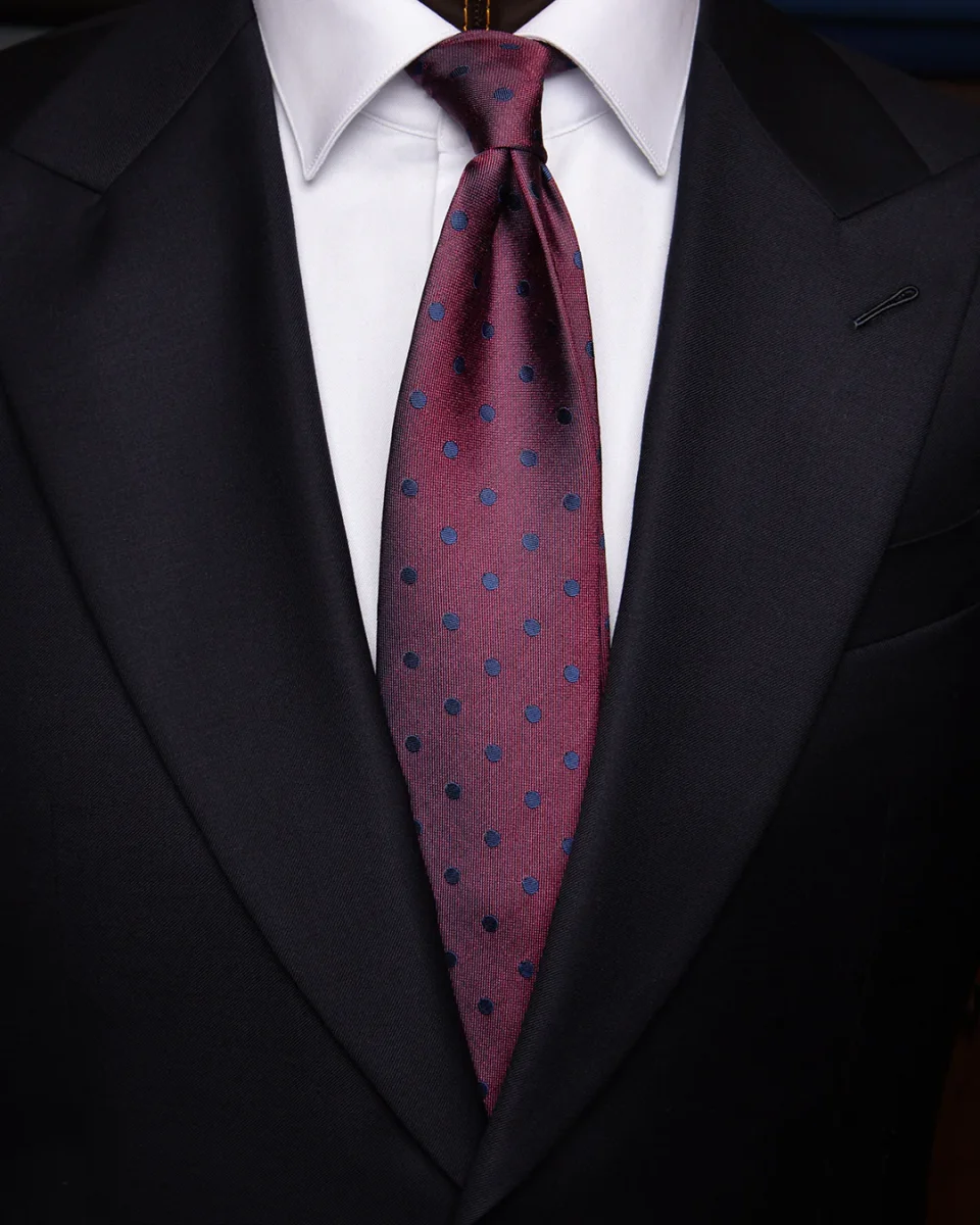 Cravatta Bordeaux con Pois Blu