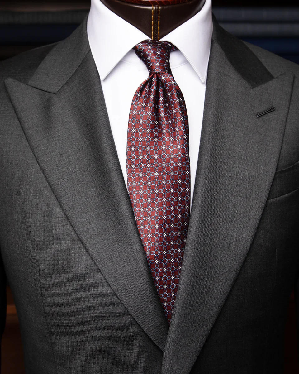 Cravatta Bordeaux in Seta con Microfantasia Argento