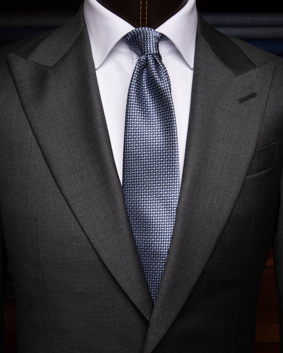 Cravatta Jacquard Blu Navy Con Rombi Tonali E Puntini Avorio