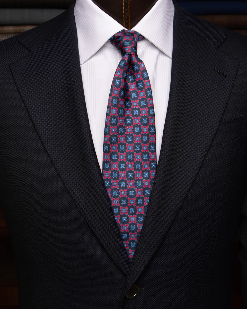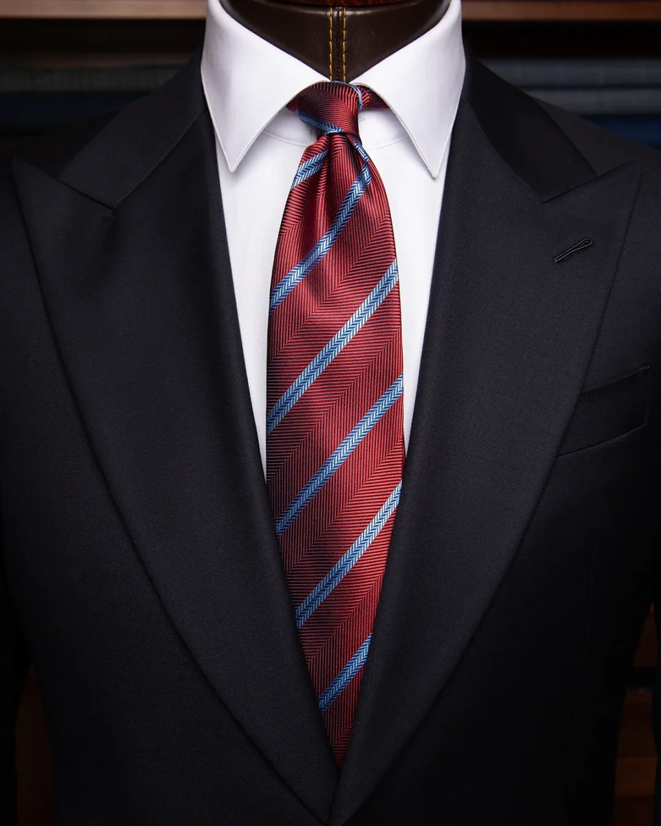 Cravatta Regimental Rossa-Azzurra con Trama Spinata