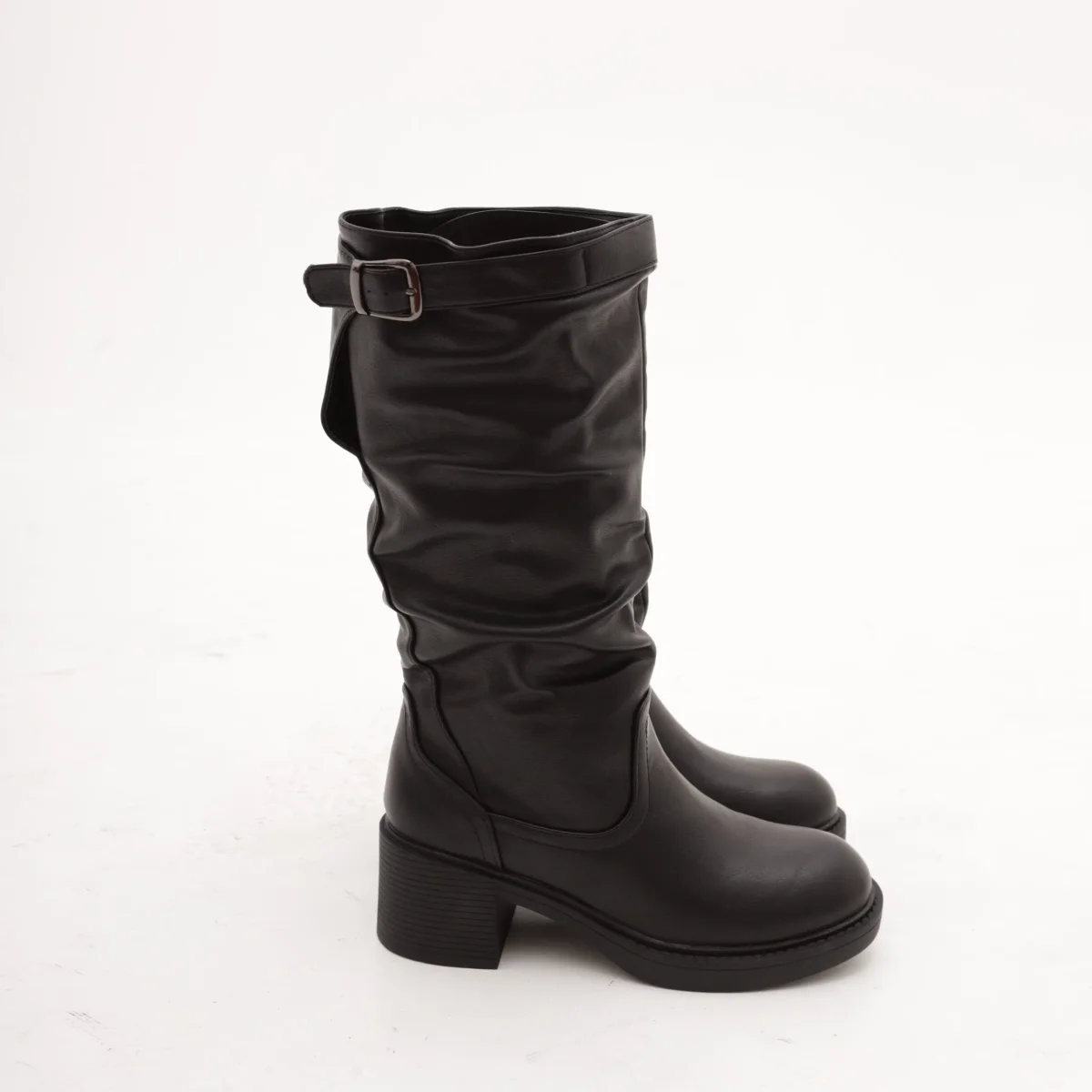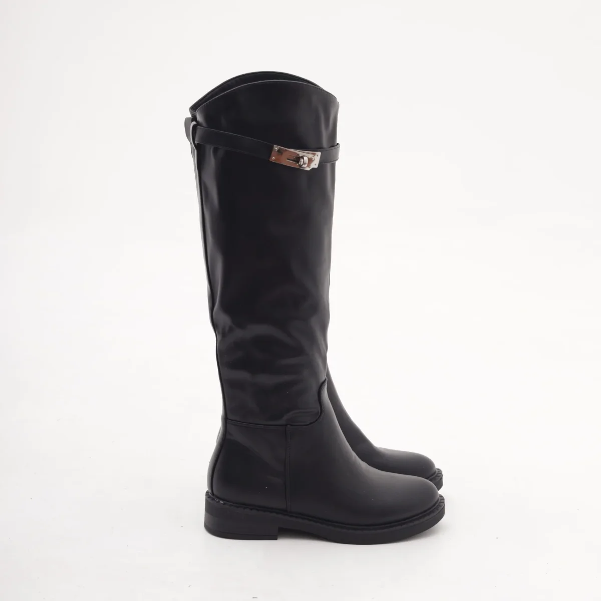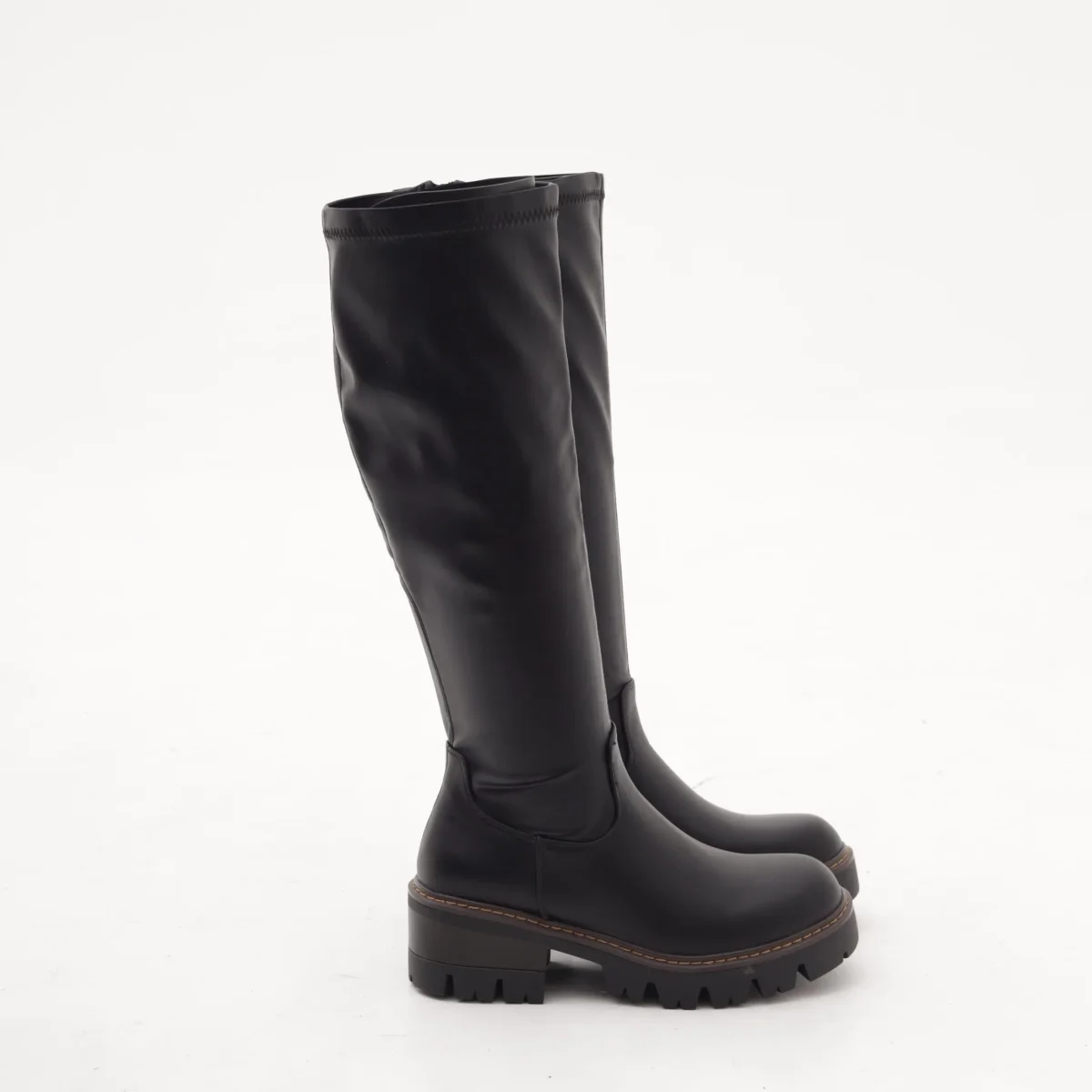 Modello Stivale Cavallerizza in eco-pelle Nero. Disponibile anche nel colore Beige.