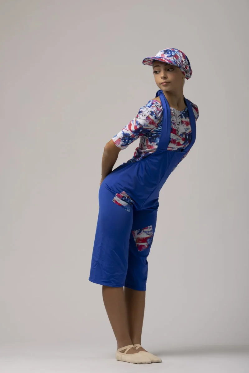 Salopette di Lycra con toppe, maglietta e cappellino in Lycra fantasia