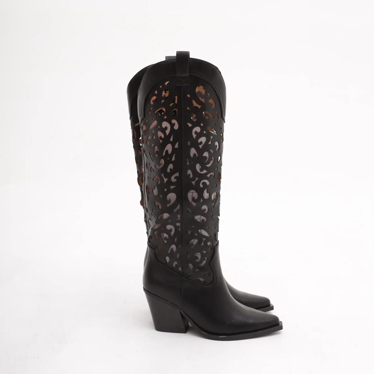 Modello Stivale realizzato in simil-camoscio Nero. Gambale largo risvoltato. Disponibile anche nel colore Tortora.