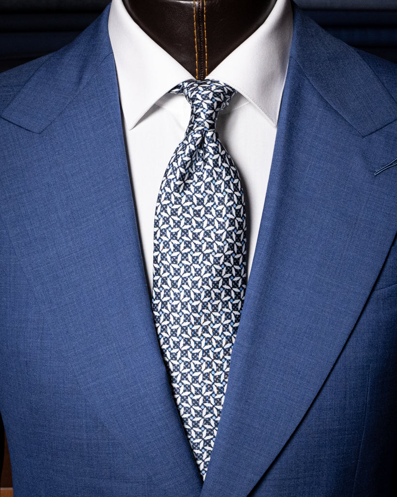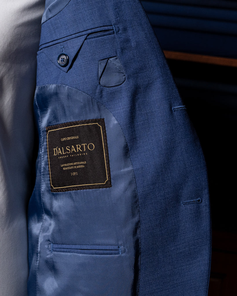 - Tessuto Blu Chiaro Navy: Realizzato con un tessuto blu comando stellare di alta qualità, questo abito offre durabilità e comfort, mantenendo un aspetto elegante e distintivo. Il colore blu comando stellare aggiunge un tocco di freschezza e modernità, ideale per l’ambiente business.