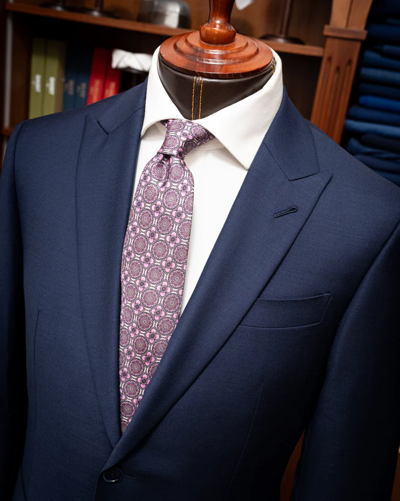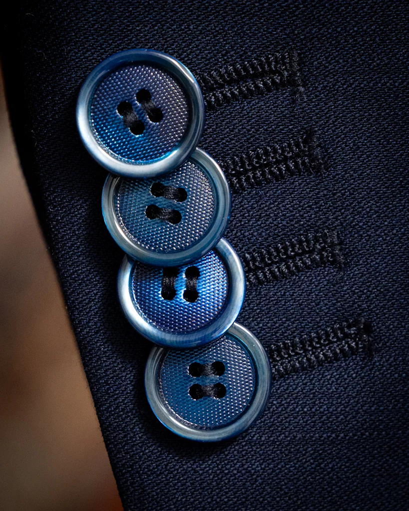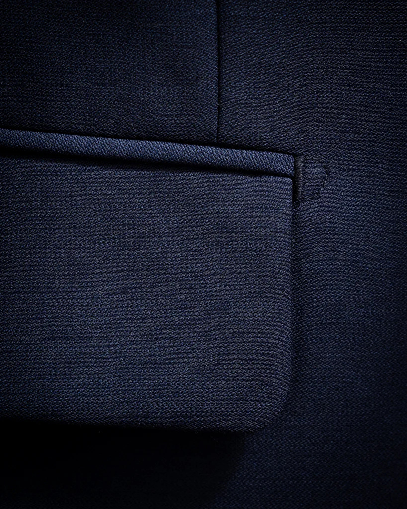 Realizzato con tessuto blu navy di prima qualità, questo abito offre comfort e durata nel tempo, mantenendo un aspetto impeccabile giorno dopo giorno.