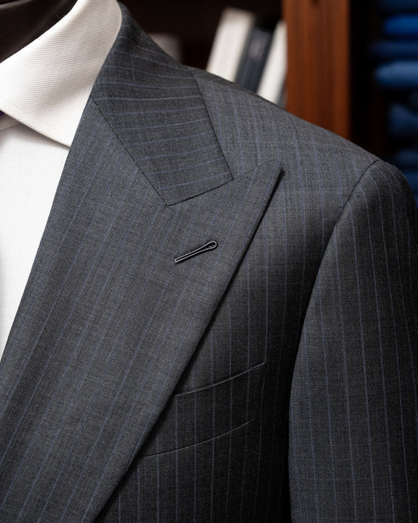 - Tessuto grigio cenere gessato: eleganza senza tempo.