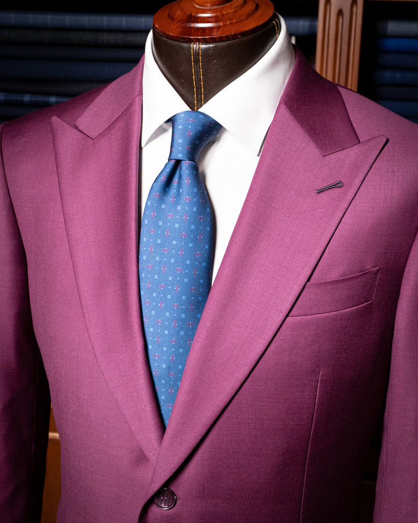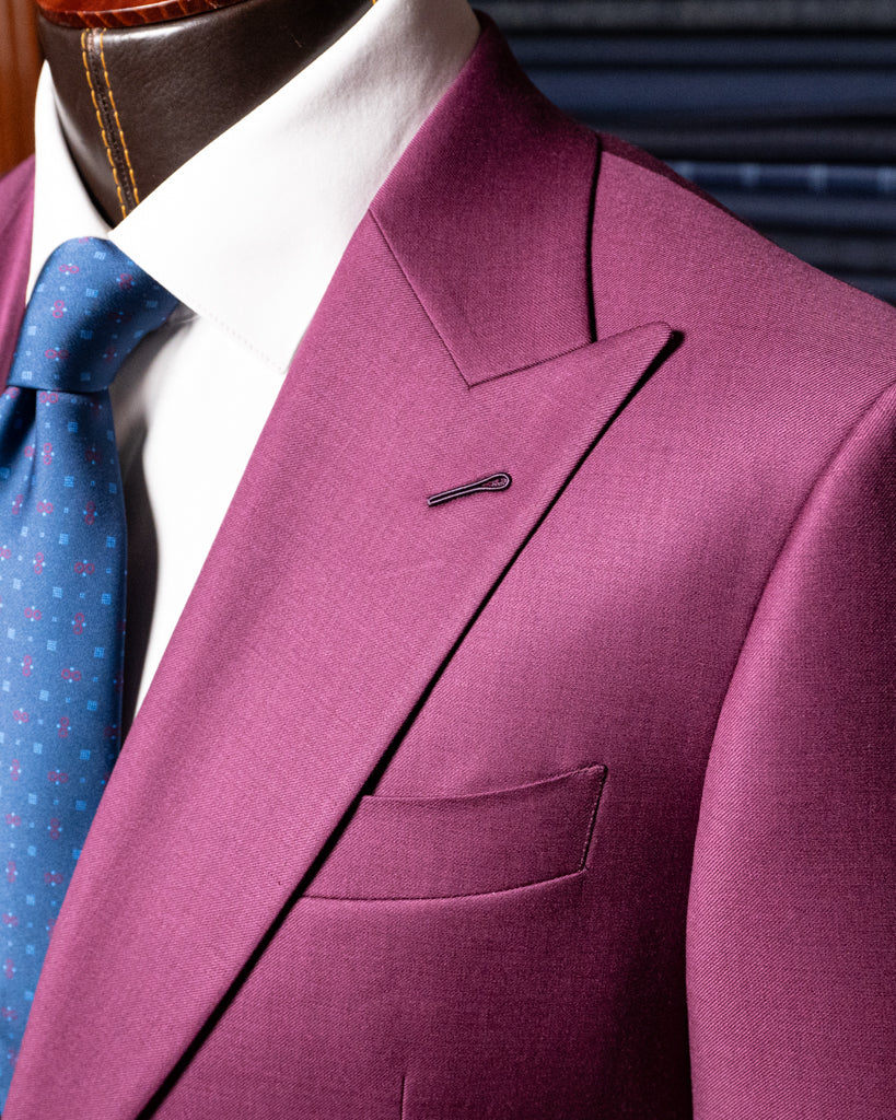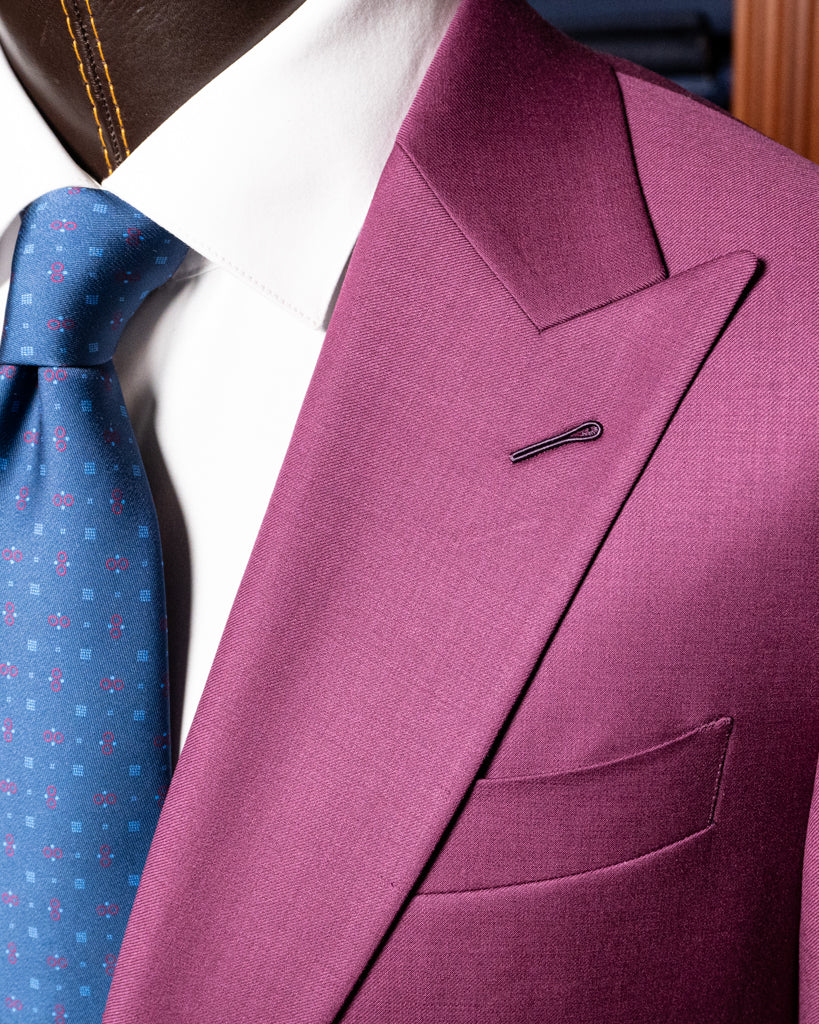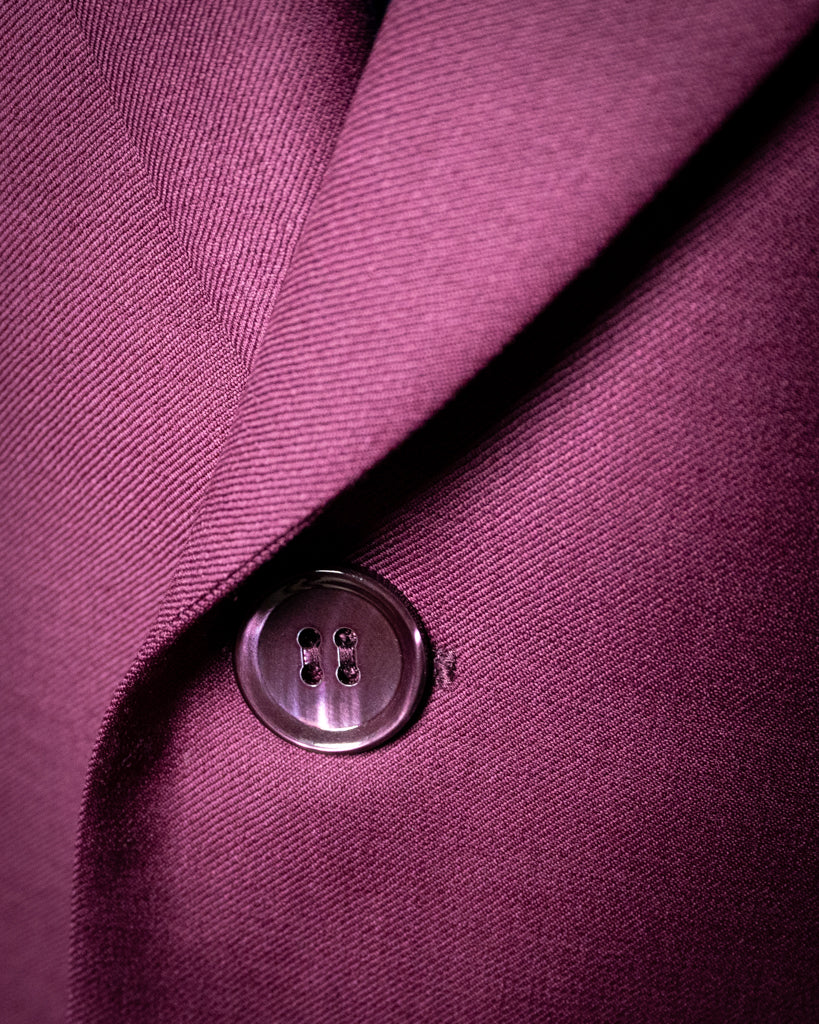 - Tessuto Prugna in Lana: Realizzato con tessuto prugna in lana di alta qualità, questo abito offre comfort e stile, garantendo un look raffinato e distinto.