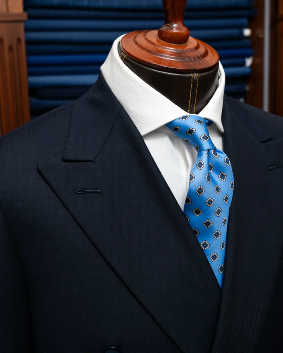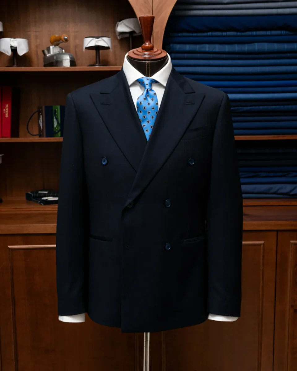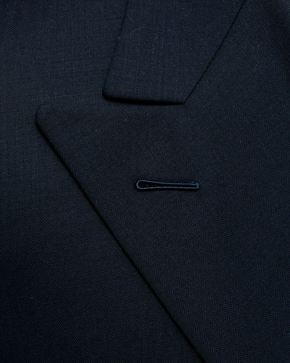 - Tessuto Blu Spinato Scuro: Realizzato con tessuto di alta qualità in blu spinato scuro, questo abito offre un’eleganza senza tempo e una raffinatezza distintiva, perfetta per il professionista moderno che apprezza la qualità e lo stile superiore.