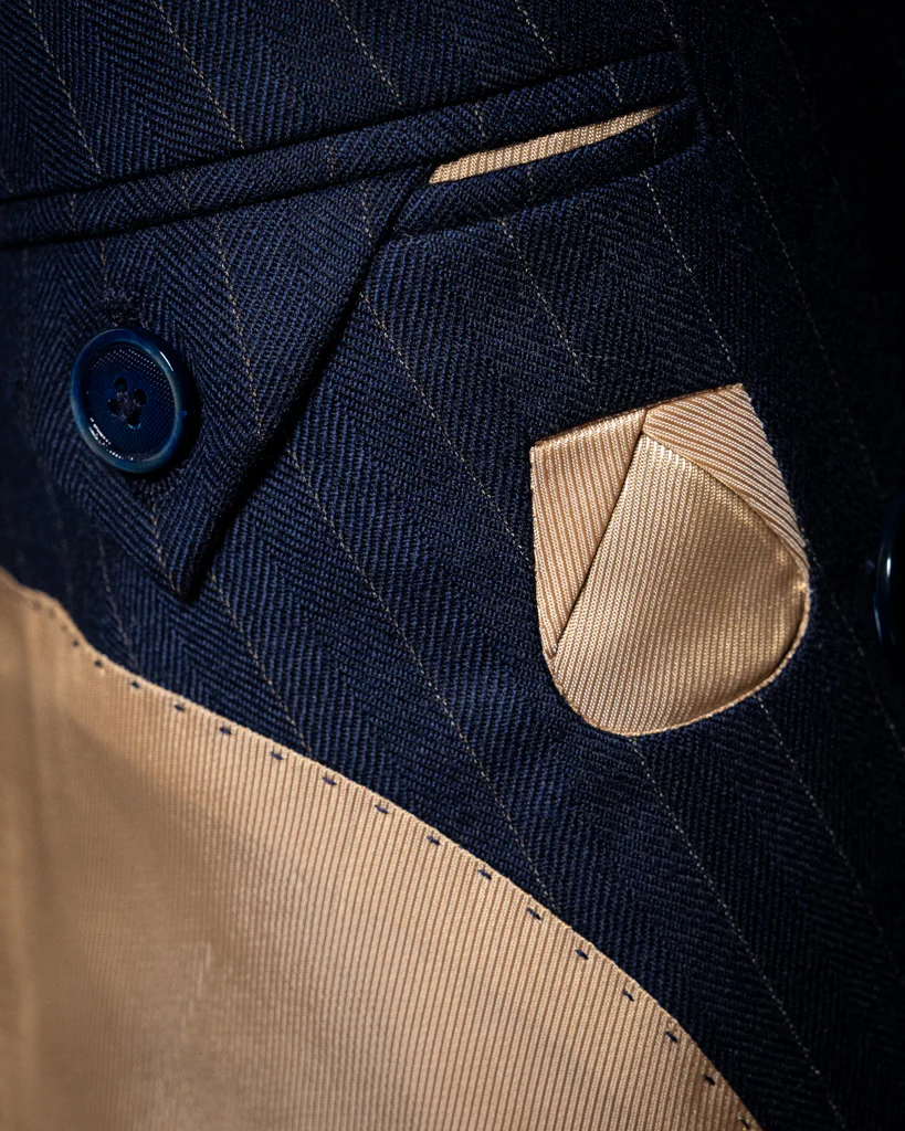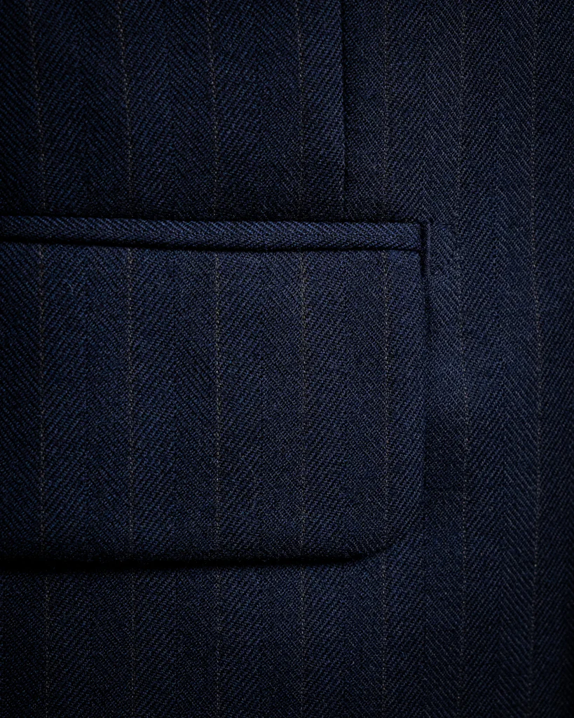 - Tessuto Blu Spinato Gessato: Realizzato con tessuto di alta qualità in blu spinato gessato, questo abito offre un’eleganza senza tempo e una raffinatezza distintiva, perfetta per il professionista moderno che apprezza la qualità e lo stile superiore.