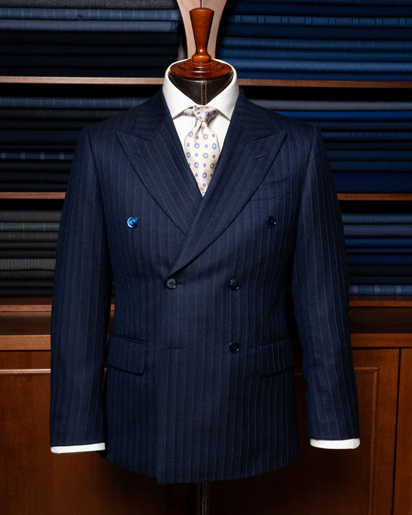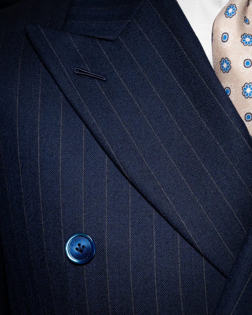 Abito Canova Blu Spinato Gessato: Eleganza Distinta per l’Uomo d’Affari Moderno