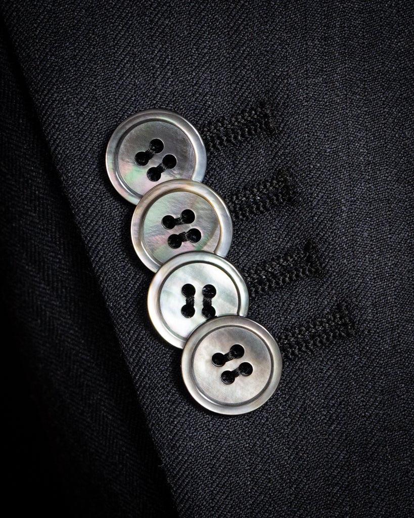 - Sei Bottoni Doppiopetto: Simbolo di raffinatezza e autorità, i sei bottoni doppiopetto conferiscono un’eleganza senza tempo al completo, evidenziando un gusto impeccabile.