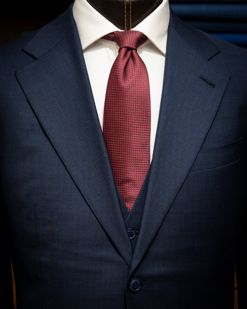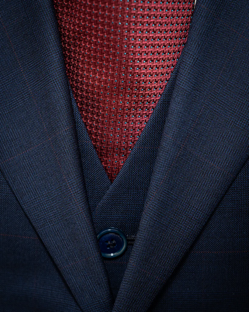 Sia che tu partecipi a riunioni di vertice o incontri formali, l’Abito Giotto Blu con Micro Quadri Rossi e Gilet ti farà distinguere per il tuo stile impeccabile.