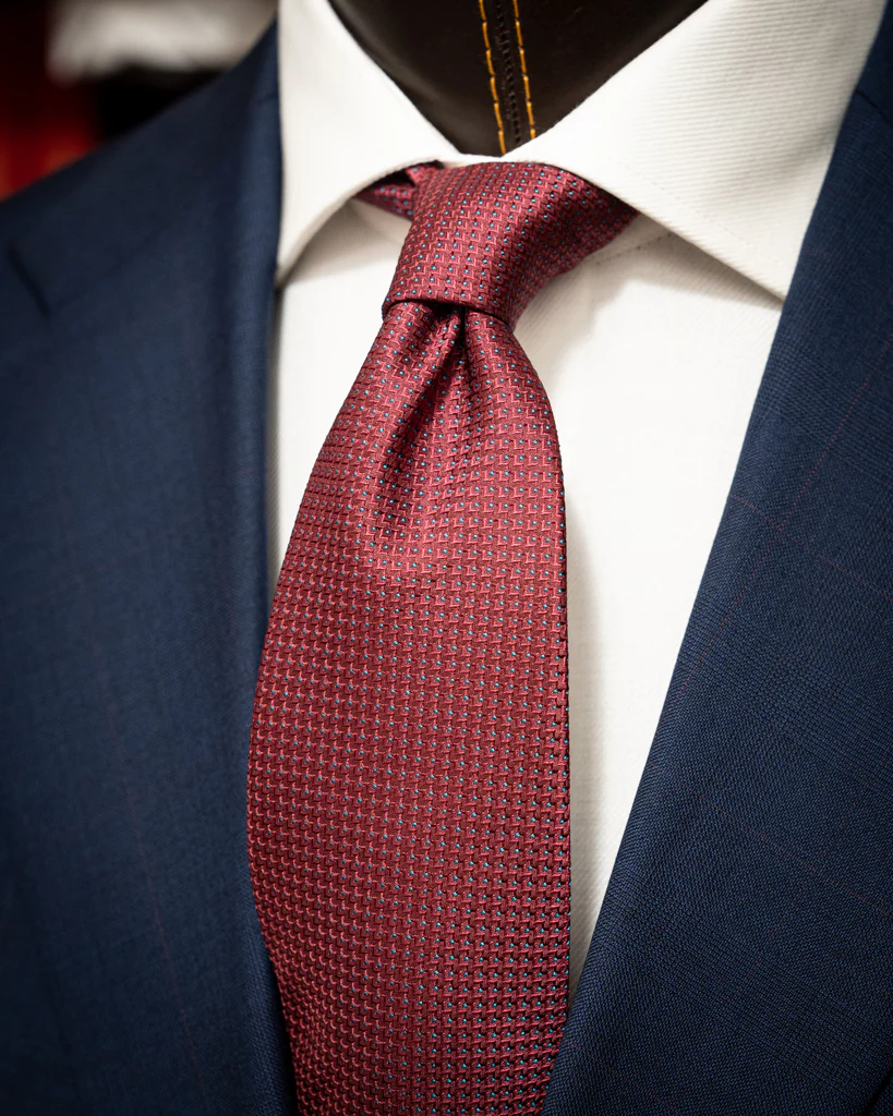 Versatile e Professionale: Grazie al suo design curato e alla tonalità blu con micro quadri rossi, si adatta perfettamente a varie occasioni di lavoro.