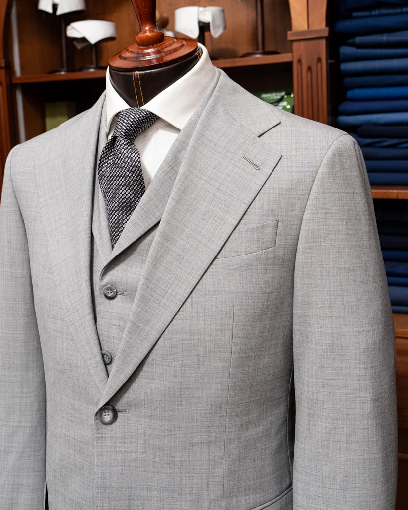 Investi nell’eleganza senza tempo e nella qualità superiore dell’Abito Giotto Grigio Principe di Galles con Gilet.