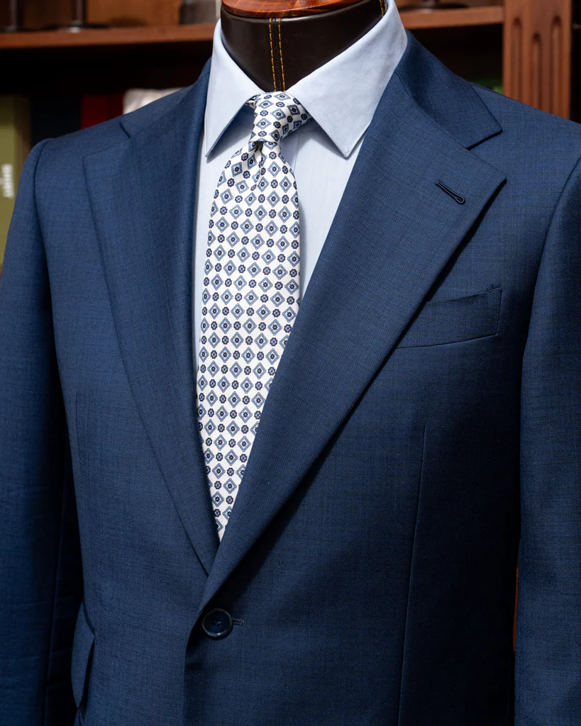 L’Abito Giotto in questa versione è realizzato in un pregiato Twill Blu Notte, un tessuto che grazie alla sua caratteristica armatura a saia diagonale garantisce un drappeggio superiore e una naturale resistenza alle pieghe. La tonalità blu notte, profonda e solenne, rende questo capo il pilastro fondamentale del guardaroba maschile, perfetto per contesti business d’alto livello e cerimonie formali.