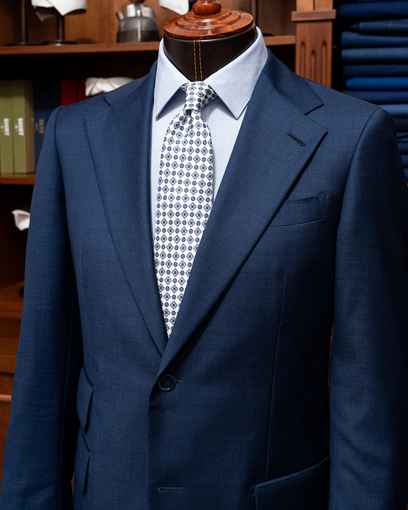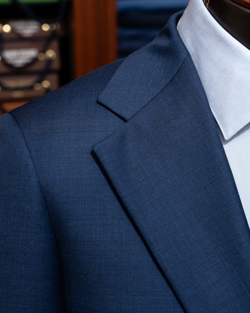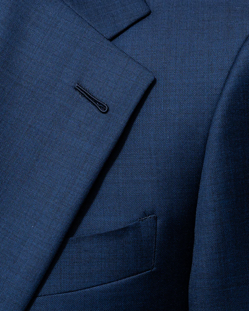 - Tessuto: Pura lana con armatura Twill in colore Blu Notte.