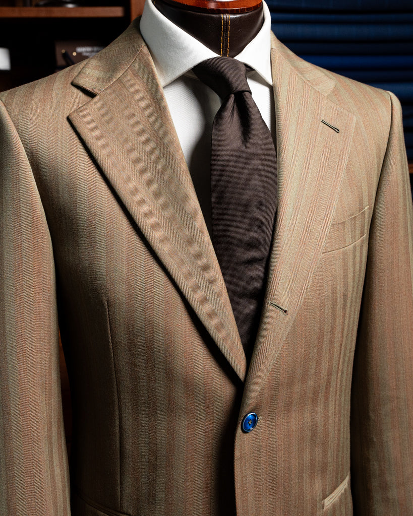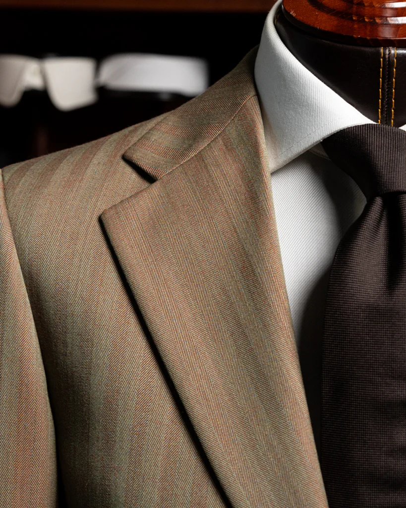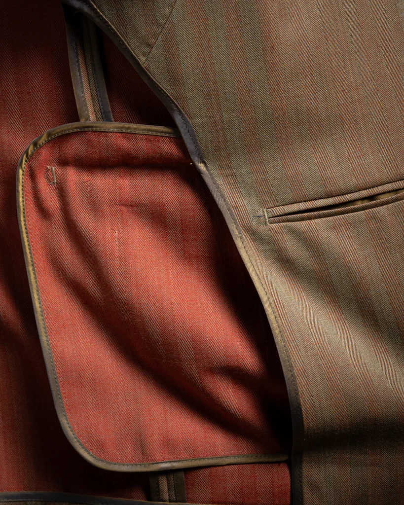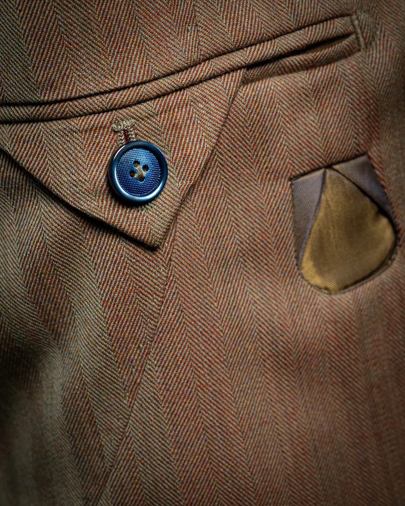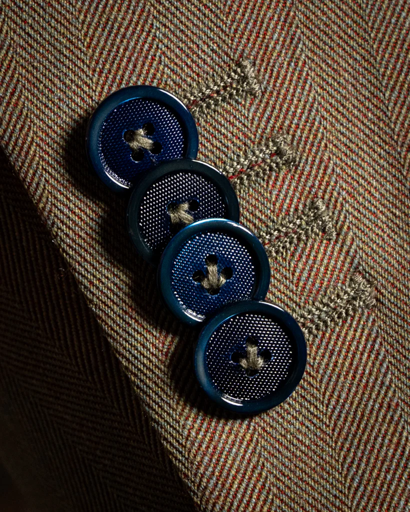 - Dettagli Sartoriali di Prestigio: Dotato di rever classico e tasche filetto, abbinati a due bottoni in madreperla, questo abito si contraddistingue per la sua sofisticata raffinatezza e l’attenzione ai dettagli.