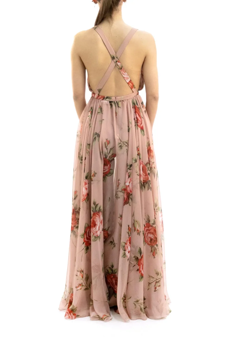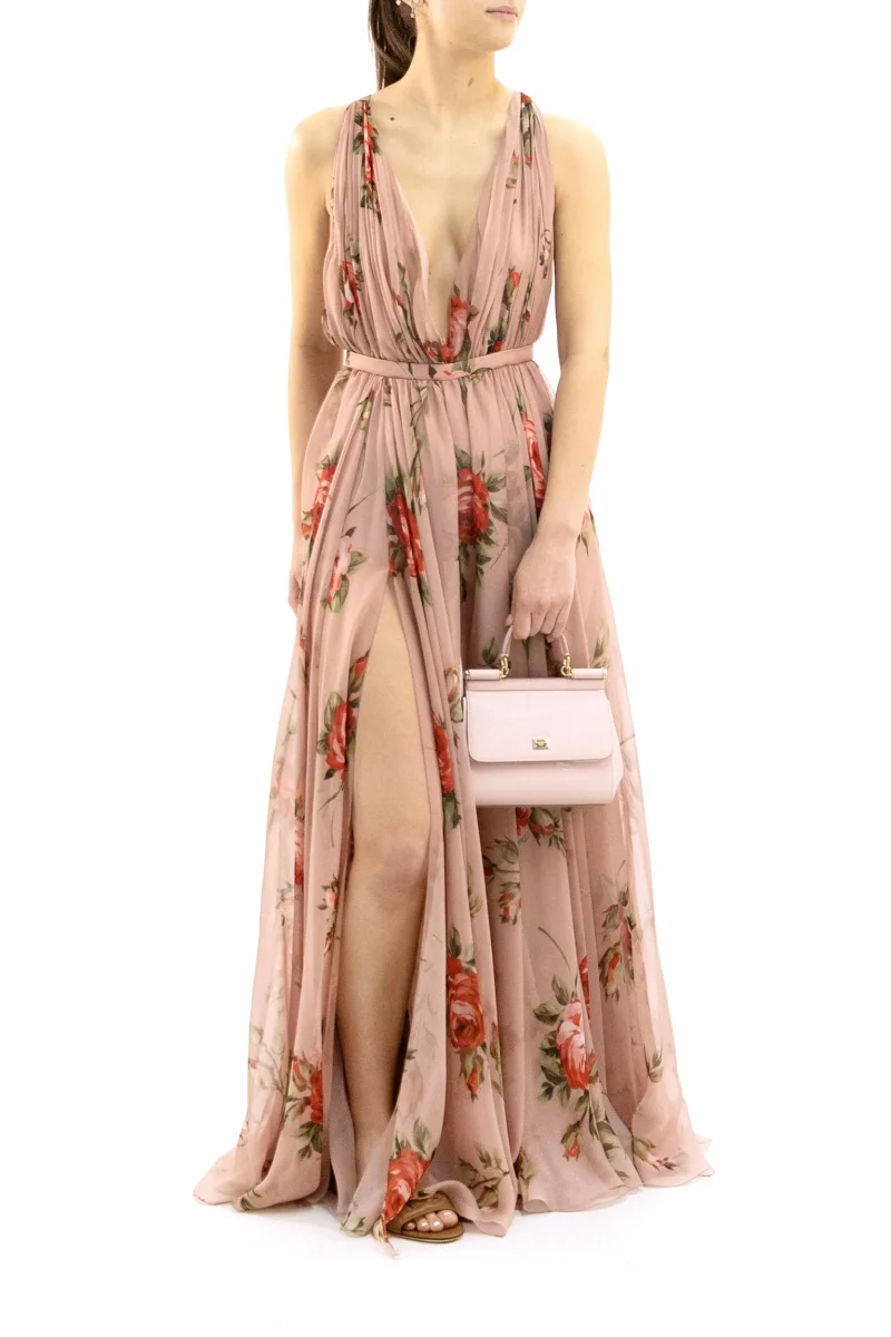 Abito in Chiffon di Seta con Stampa Bouquet Rose Composizione: 100% seta, interno 96% seta, 4% elastan. Prodotto in Italia