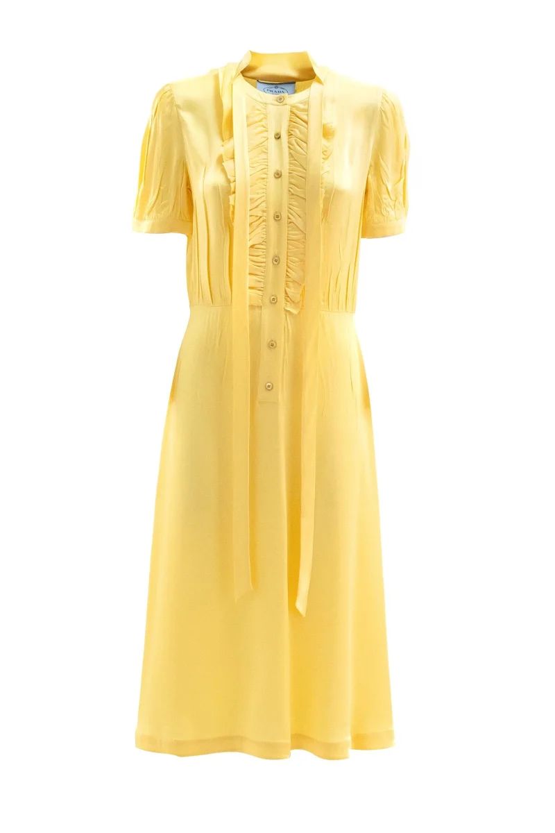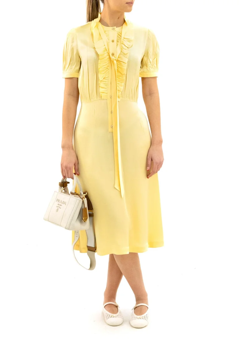 Abito in crepe di colore giallo Composizione: 77% acetato 23% viscosa. MADE IN ITALY.