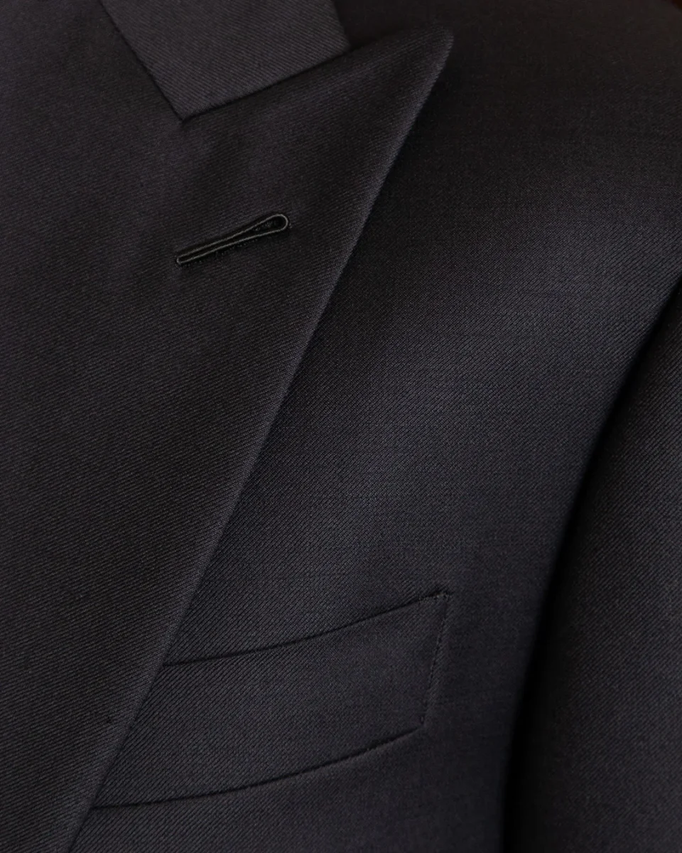 L’Abito Modernico Blue Black con fodera rossa cashmere è la quintessenza dell’eleganza notturna unita a un temperamento audace. Il “Blue Black” è un colore di straordinaria profondità: un blu scurissimo che assorbe la luce, rivelando la sua anima cromatica solo sotto riflessi diretti.