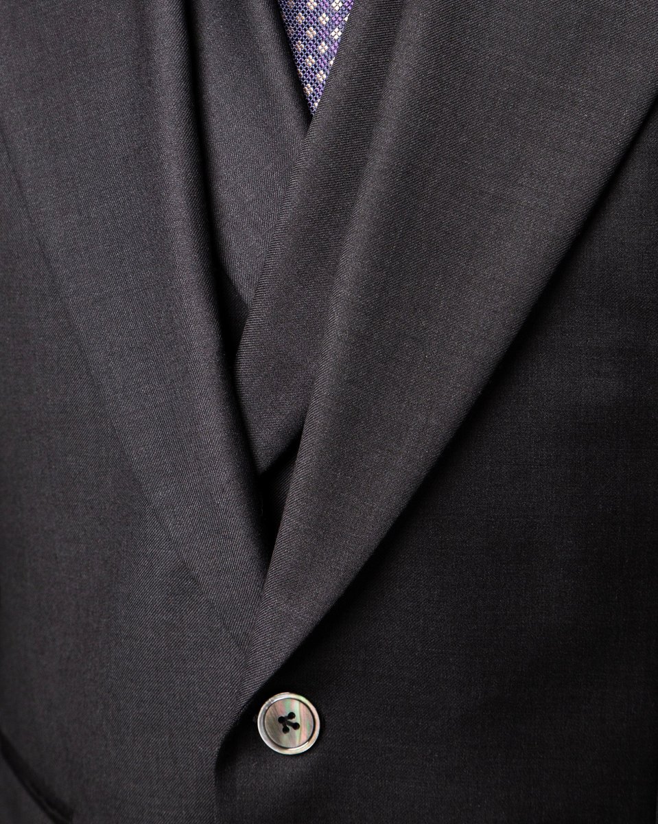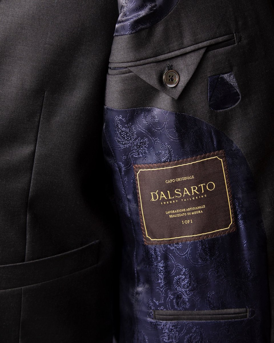 - Tessuto: Lana pregiata Grigio Antracite con finitura brillante e mano scattante.