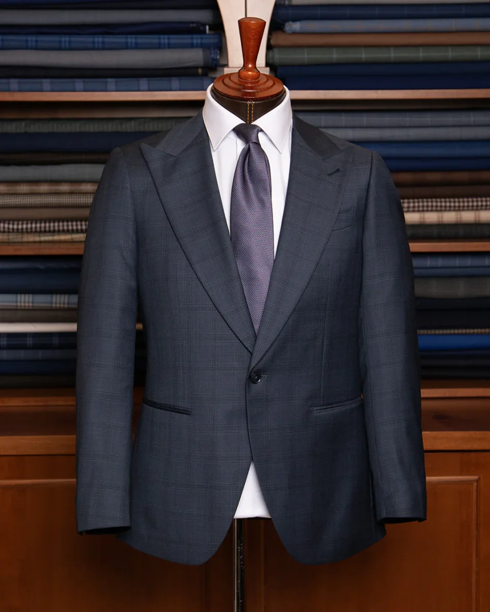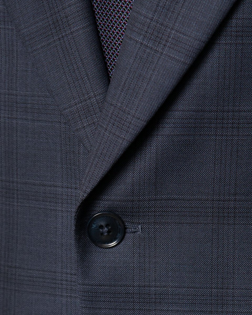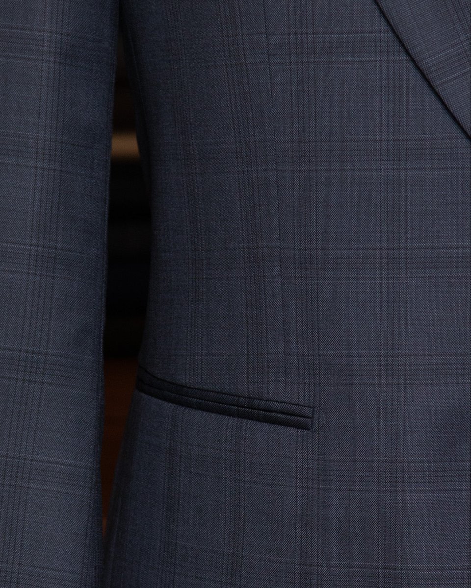 Realizzato in tessuto Principe di Galles blu, raffinato e intramontabile, questo abito si contraddistingue per la cura sartoriale dei dettagli e per una vestibilità impeccabile. La giacca a un bottone con rever a lancia e tasche a filetto esalta una linea pulita e contemporanea, mentre il pantalone senza passanti, con due pinces, garantisce un comfort superiore e una silhouette elegante.