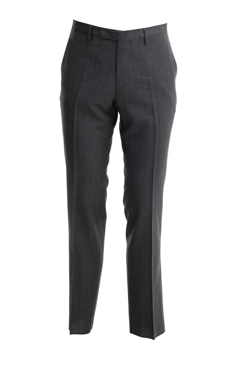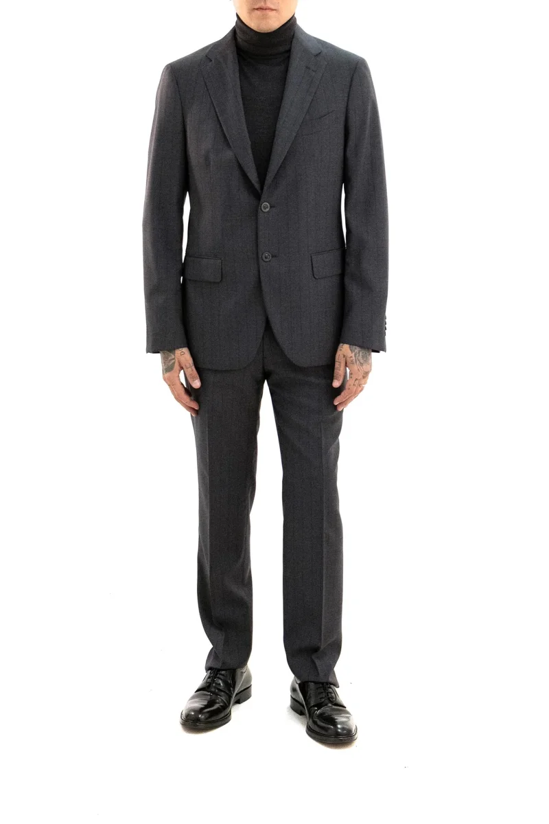 Abito monopetto gessato in lana di colore grigio Composizione: 100% lana vergine. MADE IN ITALY.