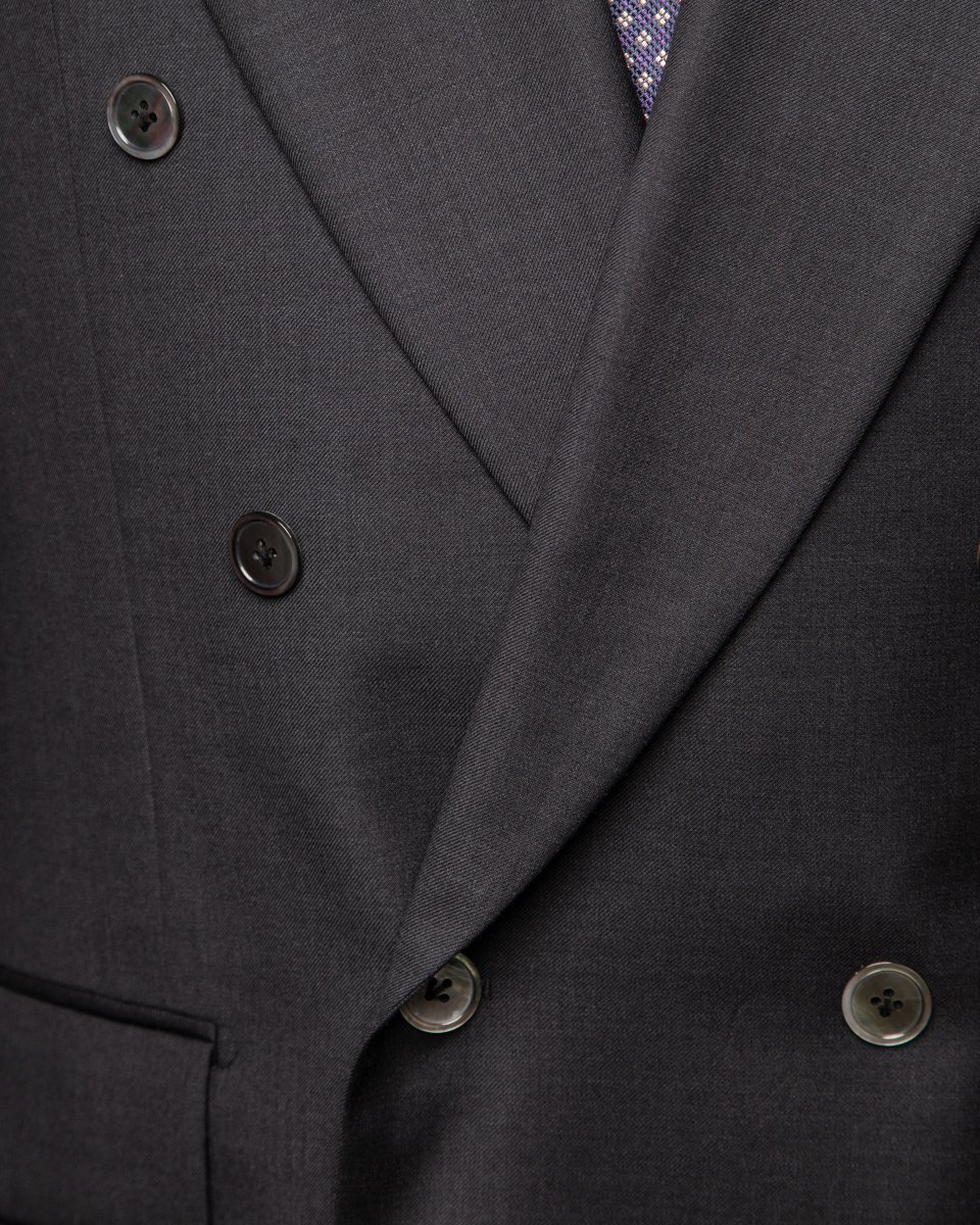 - Tessuto: Lana pregiata Grigio Antracite con finitura brillante e mano setosa.