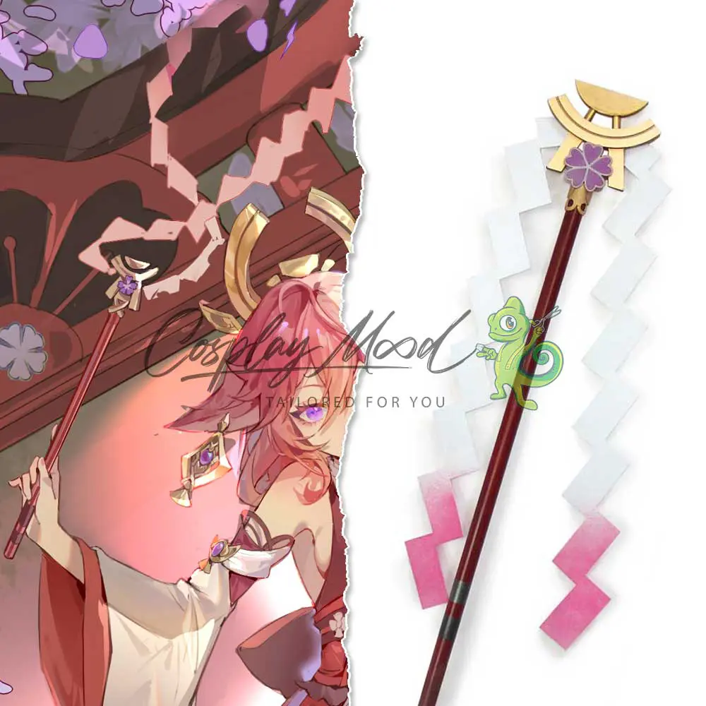 Il cosplay non passa solo dal vestito o dalla parrucca, ma anche l’accessorio spesso vale come una parte davvero importante dell’intero costume. Nel caso di Genshin Impact, gioco dal design ricco e fantasioso, gli accessori sono necessari per far risplendere a 360 gradi il vostro personaggio preferito. In questo caso abbiamo scelto di rappresentare la Gohei Wand, l’arma della bella yokai Yae Miko, introdotta ad Inazuma, è un tipo catalyst di rarità cinque stelle. Questo accessorio cosplay Gohei Wand catalyst Genshin Impact è perfetto per completare il tuo costume da Yae.