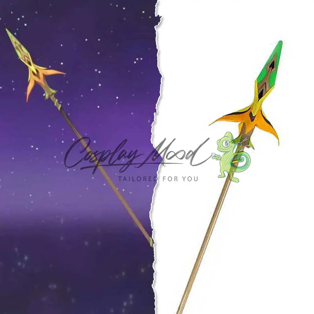 Il cosplay non passa solo dal vestito o dalla parrucca, ma anche l’accessorio spesso vale come una parte davvero importante dell’intero costume. Nel caso di Genshin Impact, gioco dal design ricco e fantasioso, gli accessori sono necessari per far risplendere a 360 gradi il vostro personaggio preferito. In questo caso abbiamo voluto rappresentare la Moonpiercer, una lancia a 4 stelle. L’arma ha la forma di una freccia gigante. Questo accessorio cosplay Moonpiercer Polearm Genshin Impact ti permetterà di dare un tocco in più al tuo costume.