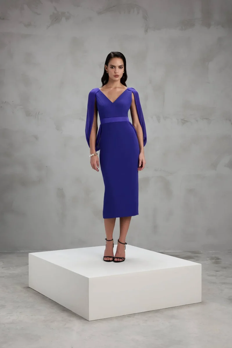 Un abito che unisce fascino moderno e raffinatezza sartoriale: questo abito midi da cerimonia donna in blu copiativo è la scelta perfetta per chi desidera distinguersi con eleganza e stile in ogni occasione speciale.