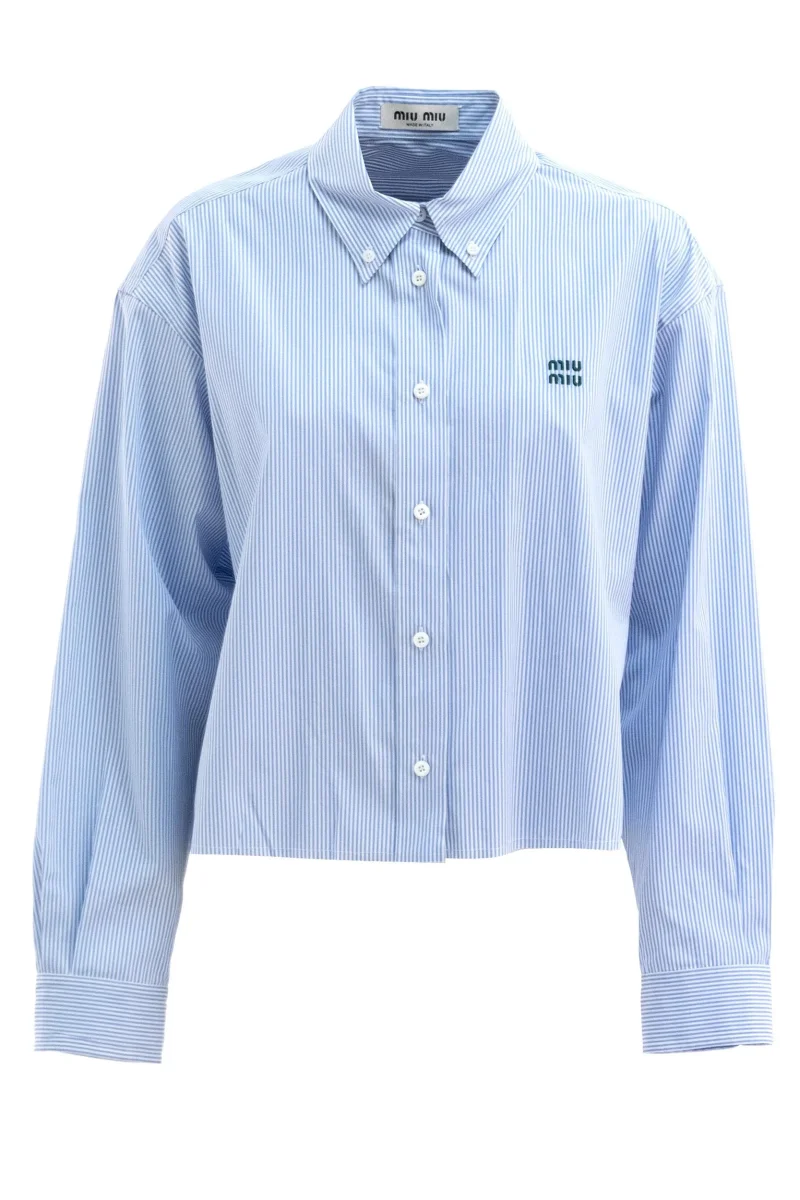 Blusa in chiffon di colore azzurro Composizione: 90% seta 8% cotone 2% poliammide. MADE IN ITALY.