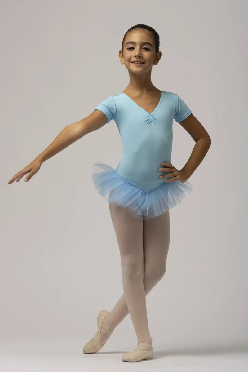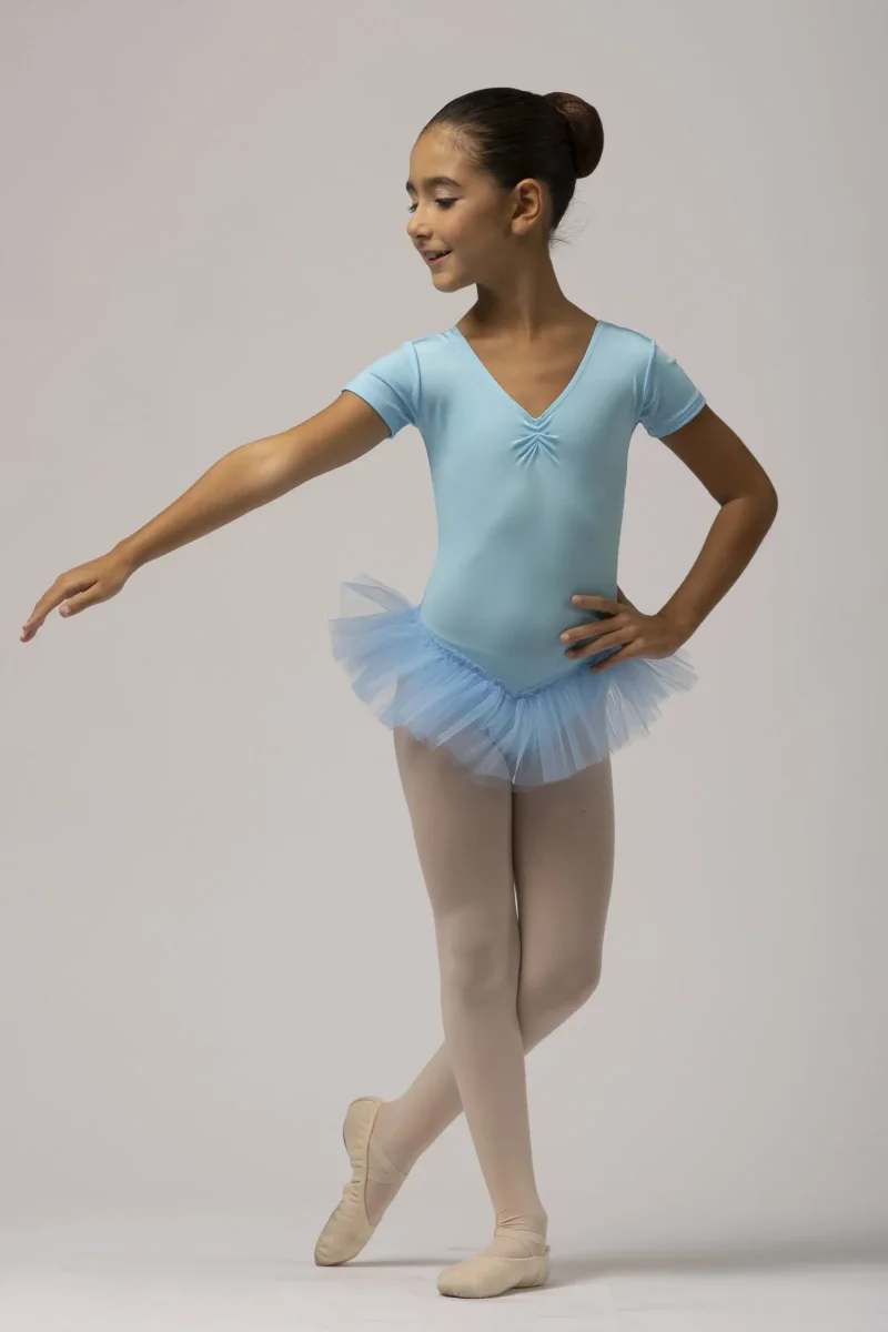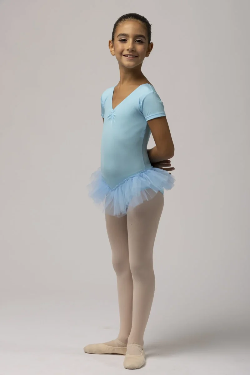 Body maniche corte con arriccio alla scollatura e piccolo gonnellino di tulle arricciato