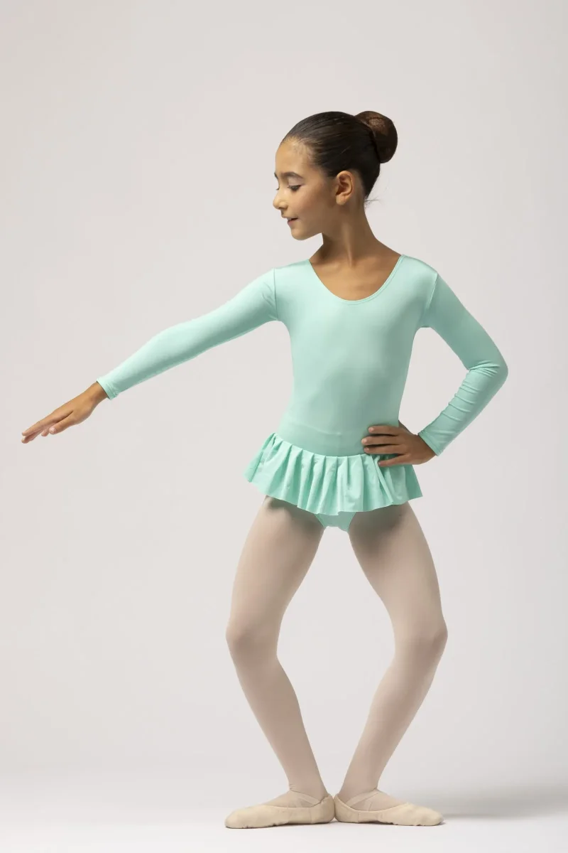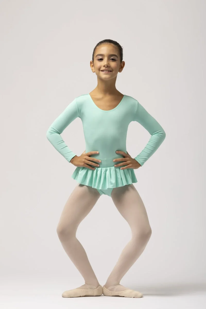 Body in Lycra con maniche lunghe e gonnellino pieghettato