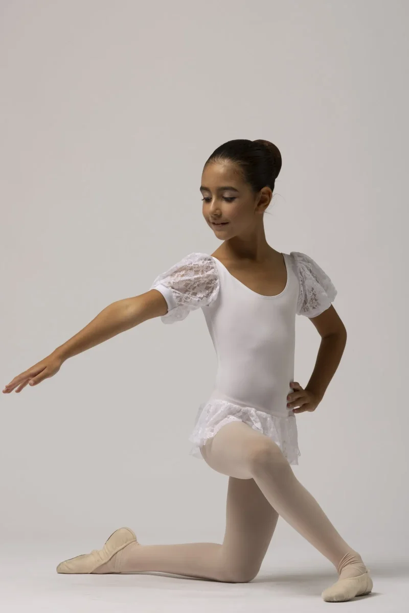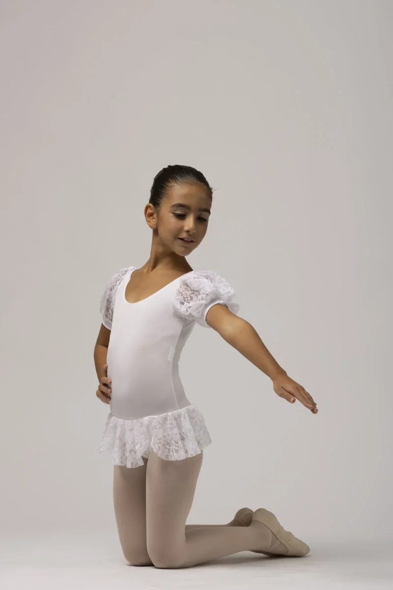 Body con maniche a palloncino e piccolo gonnellino a petali di merletto