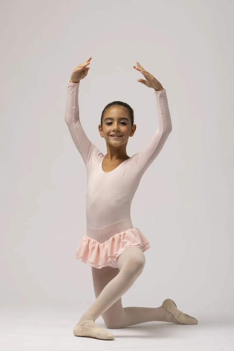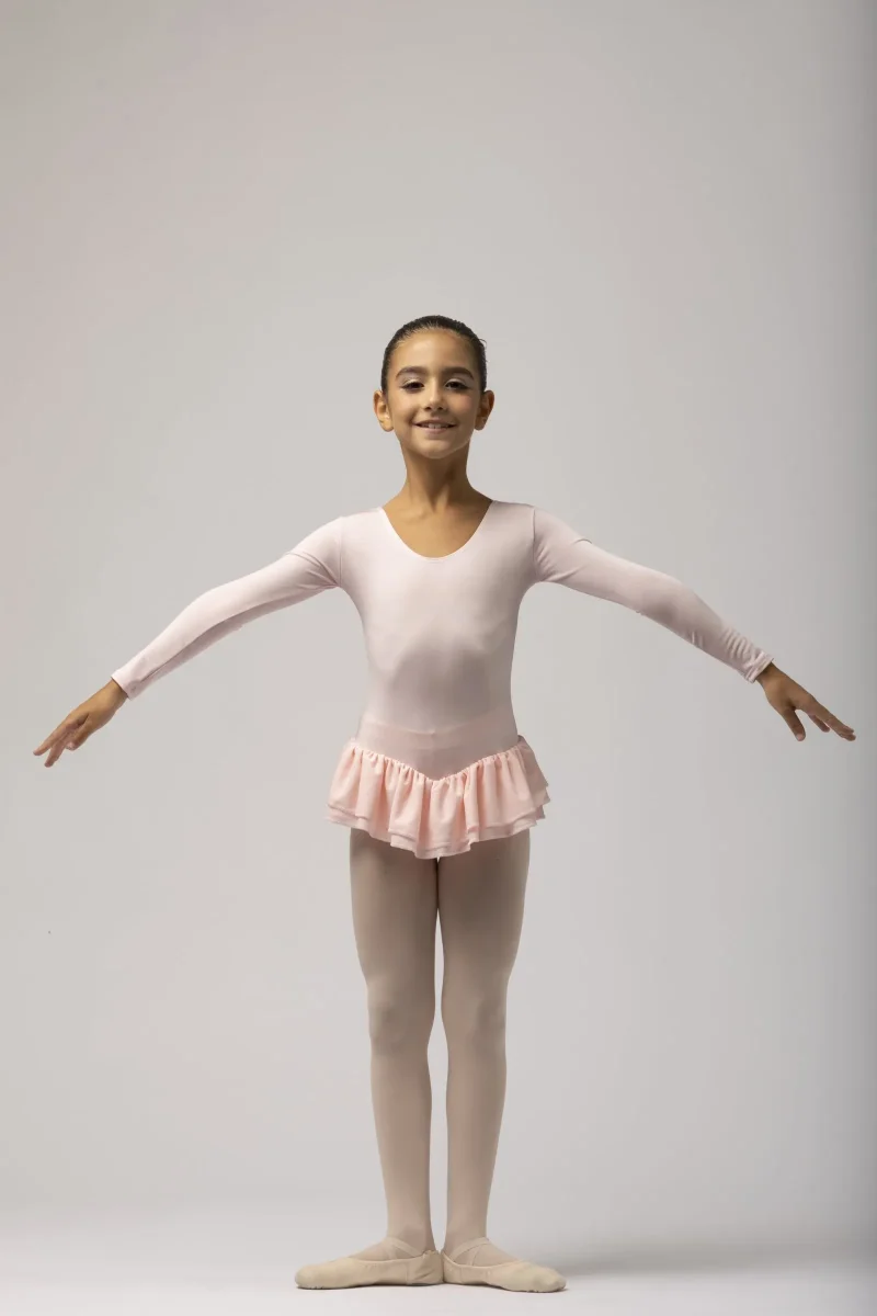 Body bambina con manica lunga e due gonnellini mod. 1229