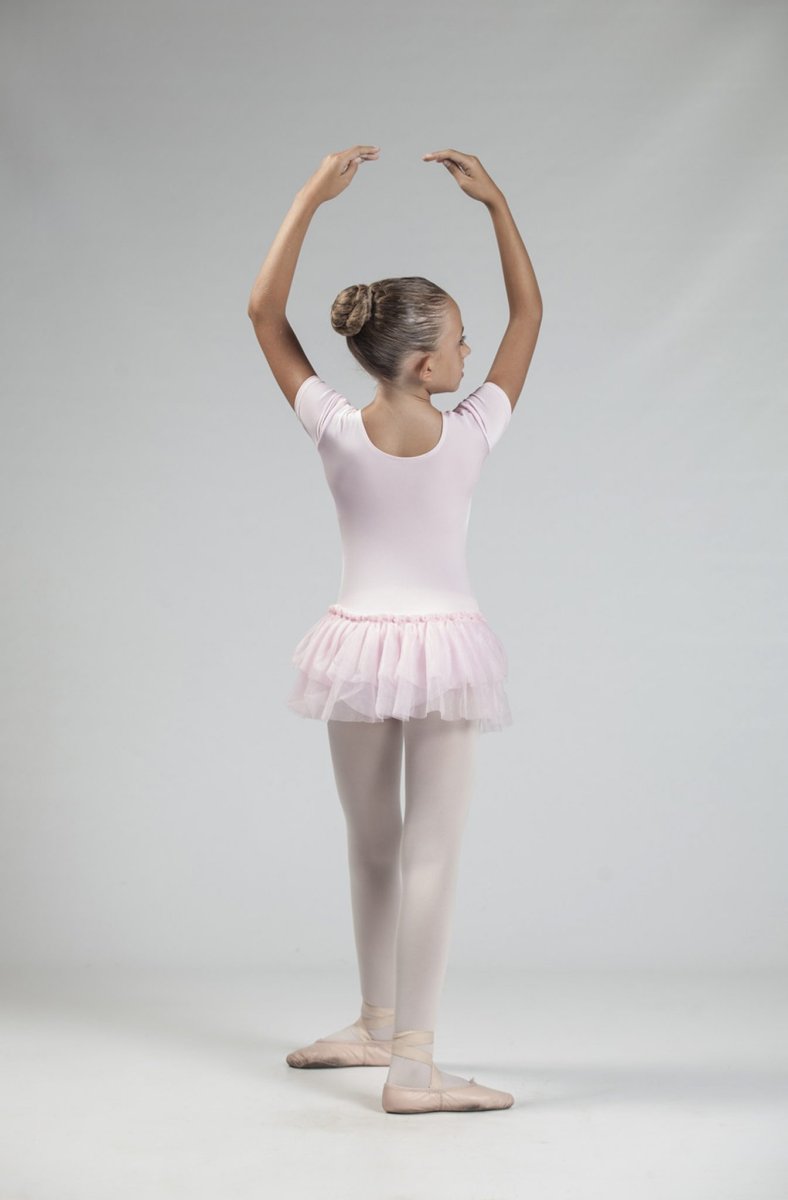 Body a maniche corte con gonnellino e due strati di tessuto scintilla arricciati e applicati al body.
