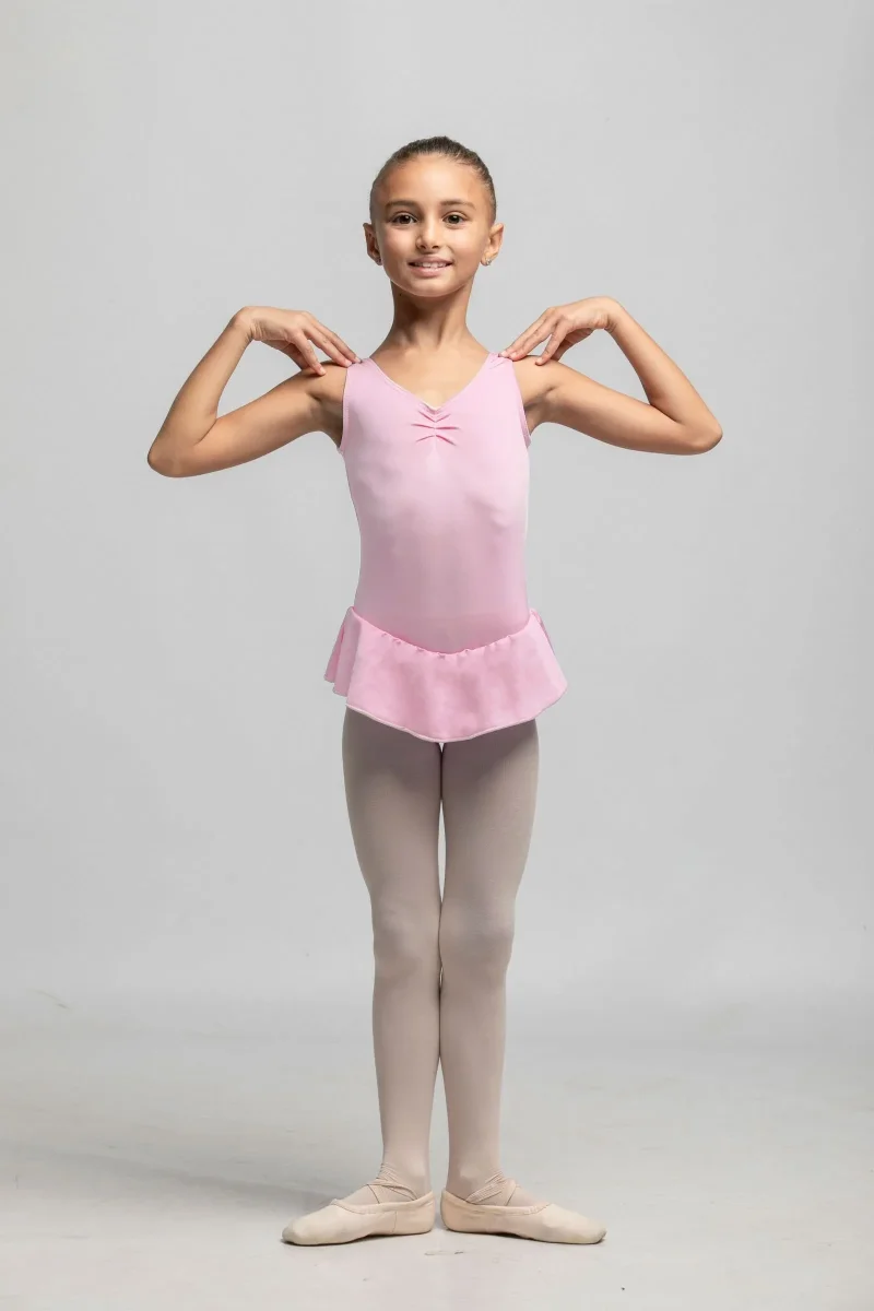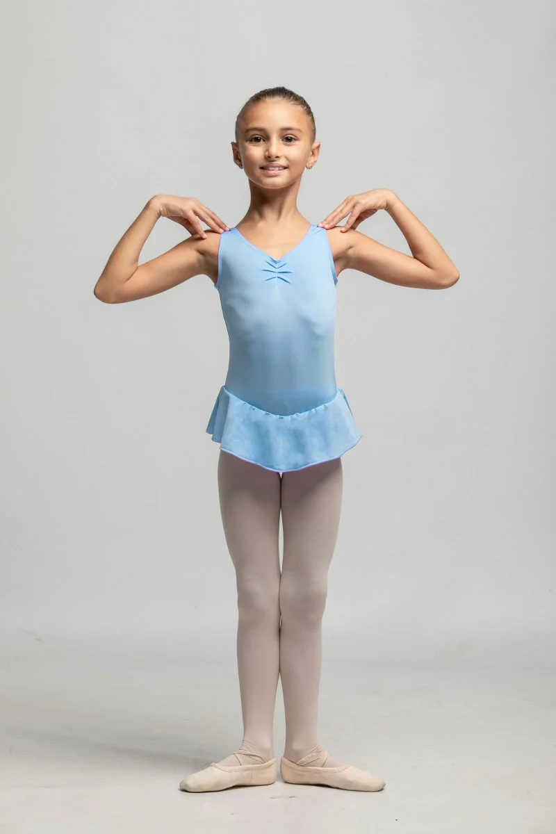 Body canottiera con arriccio seno fisso, gonnellino corto a mezza ruota cucito