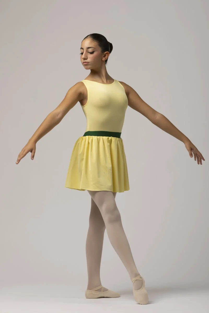 Body giromanica, scollo a barchetta, cinturino inserito, gonna arricciata