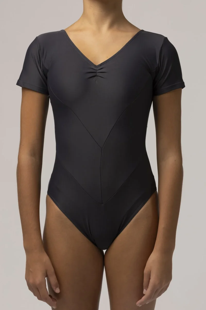Body maniche corte con arriccio seno e tagli che sagomano la figura