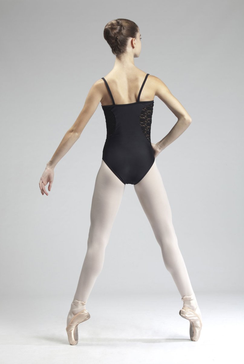 Gli inserti di merletto sono sagomati ed inseriti strategicamente in modo da snellire la forma del corpo.