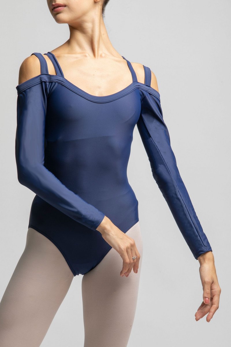 Body maniche lunghe con scollo a barca e bretelle larghe, bras al seno