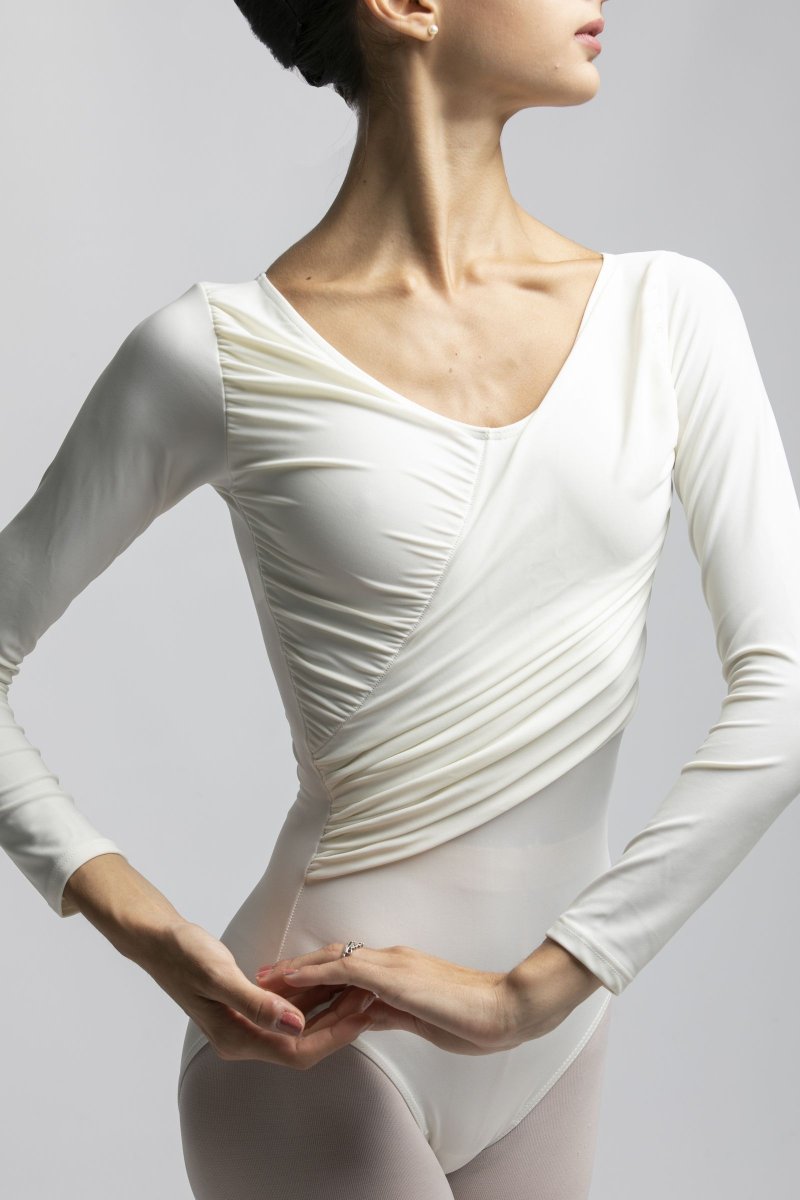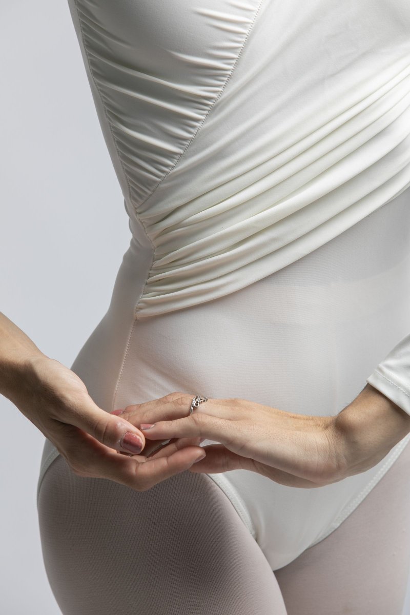 Body con 4 bretelle sottili che si incrociano dietro, apertura a taglio vivo al seno