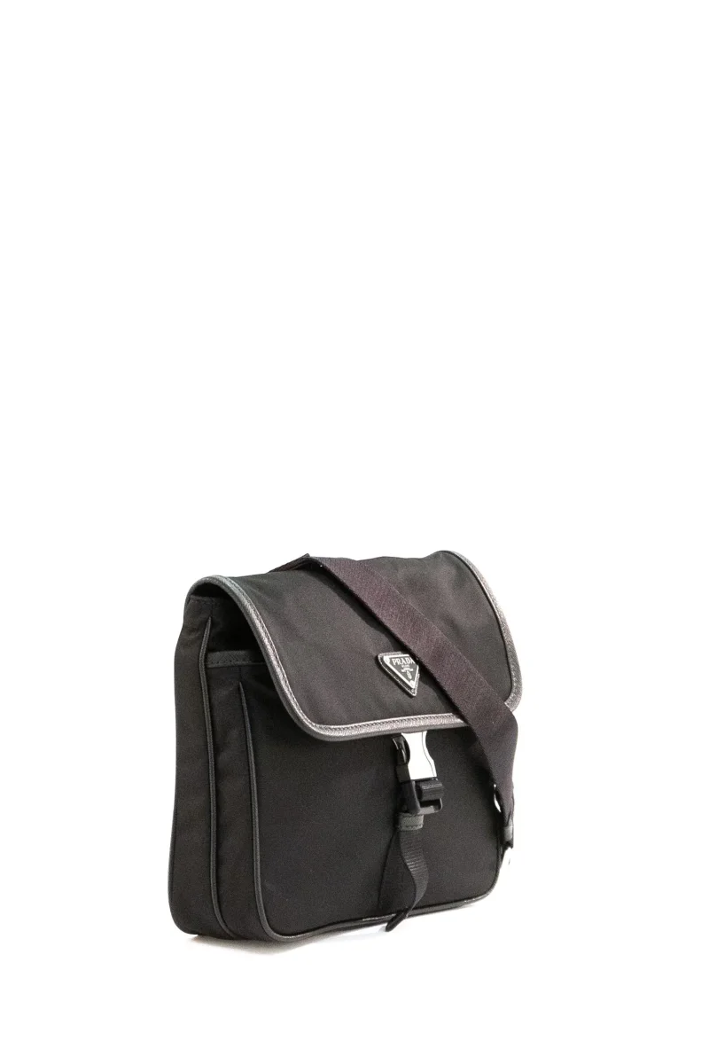 Borsa a Tracolla Composizione: 100% poliammide riciclata, 100% pelle Saffiano. Prodotta in Italia. Misure: larghezza 22 cm x altezza 20 cm x profondità 6 cm