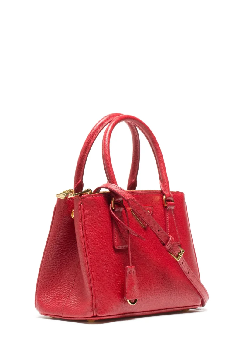 Borsa Galleria Mini in Saffiano in 100% pelle di vitello. Prodotta in Italia. Misure: larghezza 24,5 cm x altezza 16,5 cm x profondità 11 cm