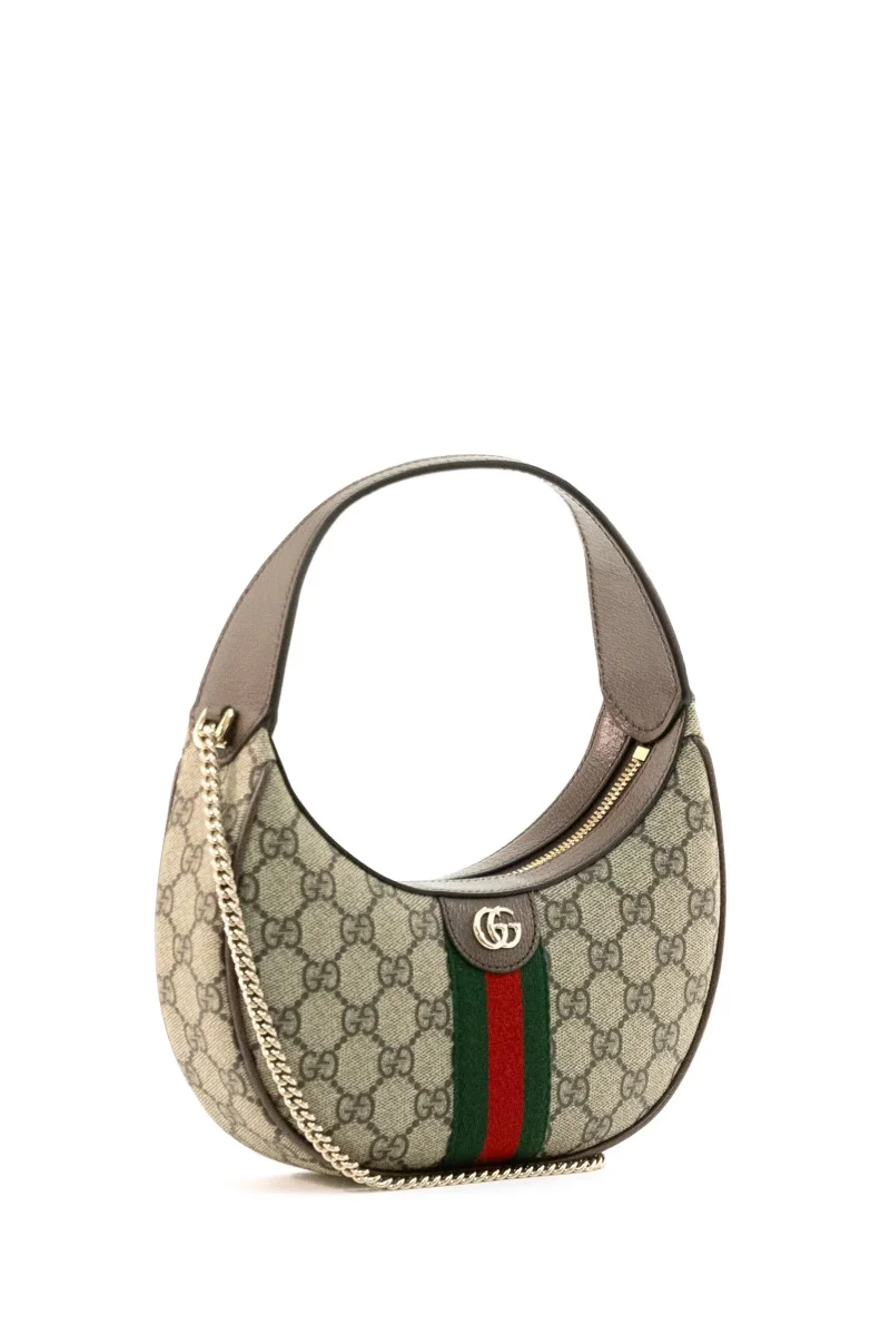 Borsa Ophidia in tessuto GG beige e marrone scuro Composizione: tessuto/pelle. Dimensioni prodotto: 20 x 14,5 x 4 cm. MADE IN ITALY.